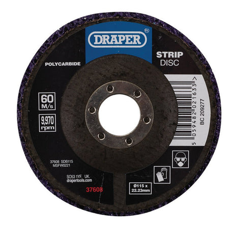 Regular price £0.60inc VATUnit priceinc VAT /UnavailableDraper Tools Polycarbide Strip Disc, 115mm, 22.23mm, 180 Grit, Purple