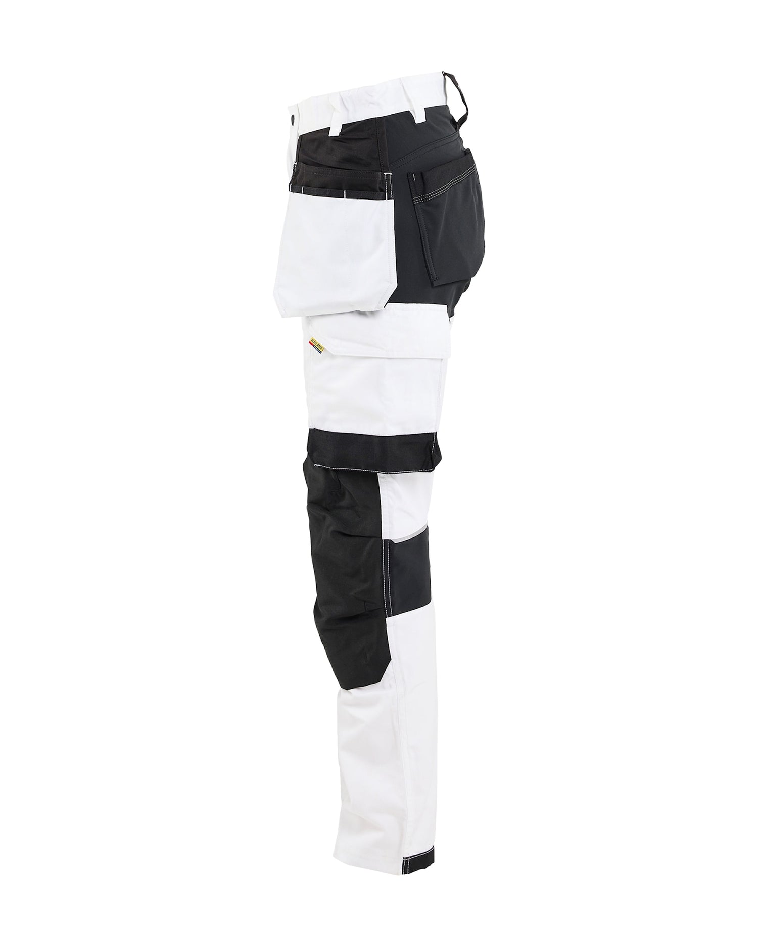 A comfortable, lightweight painter's trousers in a thinner 2-way stretch material, enhanced with 4-way stretch panels that provide ultimate comfort where it's most needed. The trousers come with an adjustable waist, fixed nail pockets, reinforced pockets, and a specially adapted, reinforced filler pocket. The bottom-loaded knee pad pocket with CORDURA® stretch ensures reliable durability and flexibility, allowing you to work efficiently and comfortably all day.