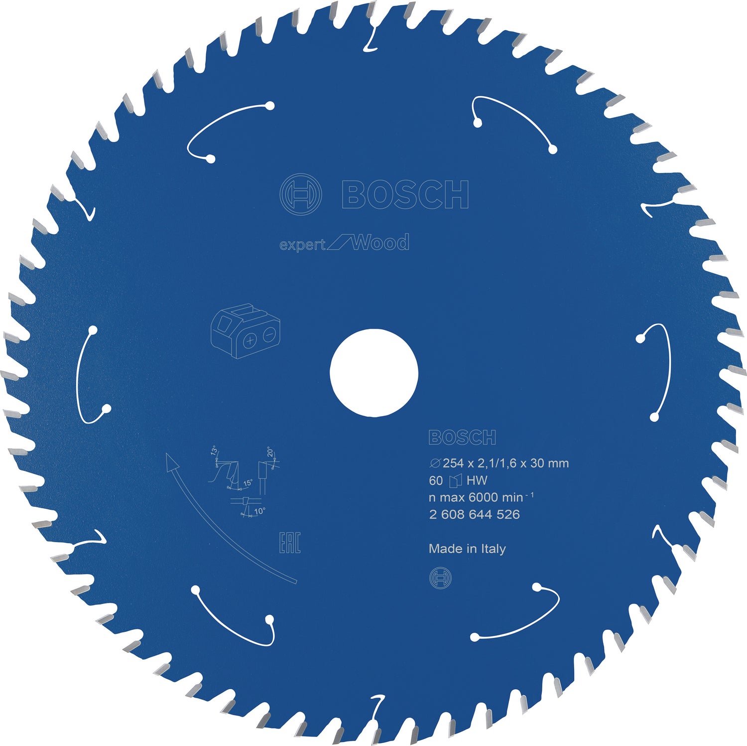 Bosch Professional Expert Circular Saw Blade for Wood - Cordless Saws - 254x2.1/1.6x30 T60