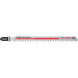 For use with jigsaws with T-Shank clamping systems. The T 341 HM Special for Fibre and Plaster Jigsaw Blade is highly durable when making straight cuts in special materials. Its ground, side-set carbide teeth are designed for prolonged use in highly abrasive mineral-based materials. Moreover, the tooth strip is welded to a highly elastic carbon steel body with Carbide Technology, allowing the blade to cut through cement fibre board, plasterboard, aerated concrete and glass fibre-reinforced plastics. It is equipped with a large tooth pitch (4.3 mm) and long length (132 mm) for cutting fibre and plaster materials up to 80 mm diameter.