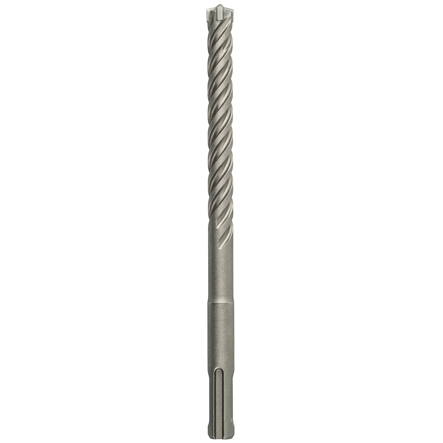 The SDS plus-5X Drill Bit offers highly efficient drilling in reinforced concrete. The geometrical form of the 4-cutter head prevents jamming and breakage for optimal results. The turn-angle head and the large and short dust removal channels within the 4-flute design provide fast dust removal so the bit can slice through concrete and rebar quickly with reduced wear. For efficient work and exact hole diameters, the centring tip guides drilling from the start, to prevent wandering, which can falsify the hole diameter. The bit is intended for use on masonry, concrete and reinforced concrete. As proof of quality, the drill bit bears the test mark of the PGM Masonry Drill Bit Association Board, guaranteeing compliance with tight tolerances, exact drilling and the firm hold of fixings. It is compatible with rotary hammers with SDS plus holders.
