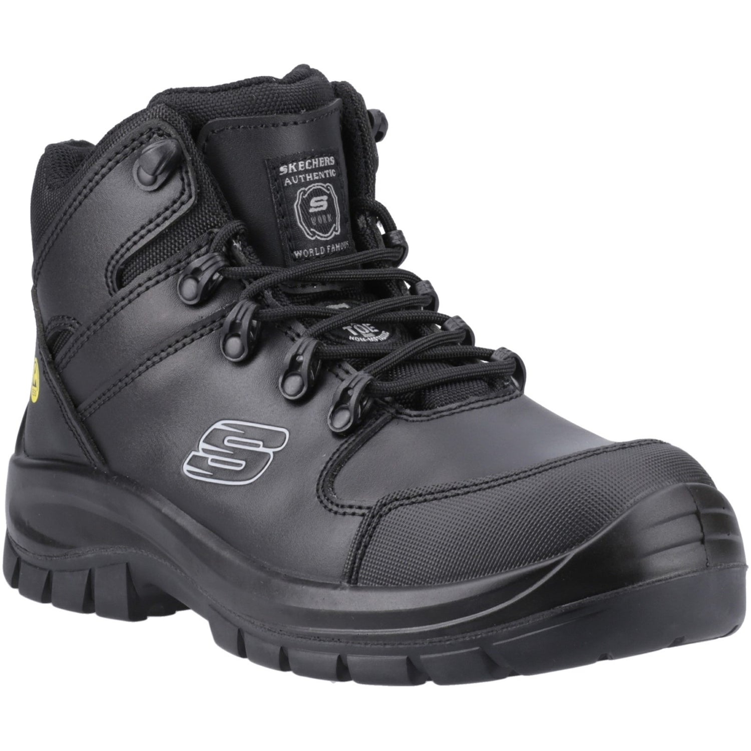Comfort and durable protection come easily with the Trophus Kilram from Skechers Workwear. A high top lace safety boot featuring a protective composite toe and a puncture resistant sole.