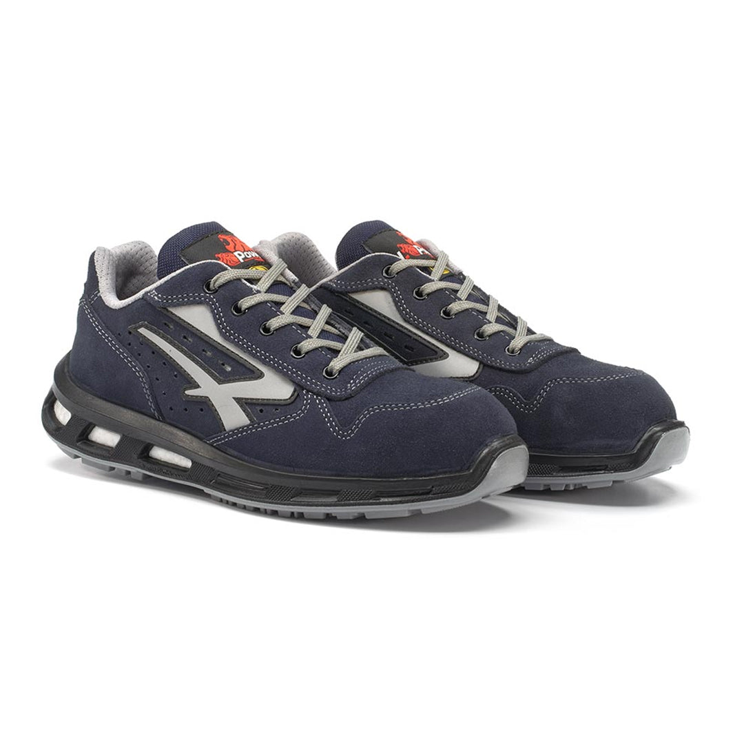Safety shoes low, light and comfortable u power of the Red Lion line, with ultra-breathable soft perforated suede leather, aluminium toecap, anti-puncture, anti-slip and PU / PU infinergy, S1P SRC ESD sole.