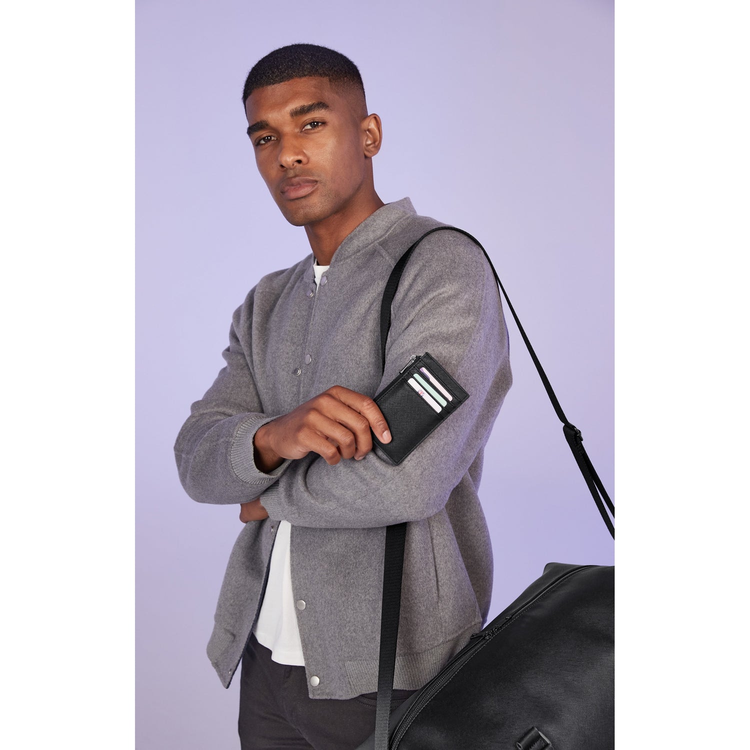 TearAway label for ease of rebranding. Saffiano fine grain. Contemporary slimline design. Can be decorated front and rear. Holds 4 credit cards. Soft-touch lining. REACH certified. BSCI certified.