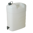 • 35L Polyethylene fluid container with attached screw cap and tap for easy fluid control.