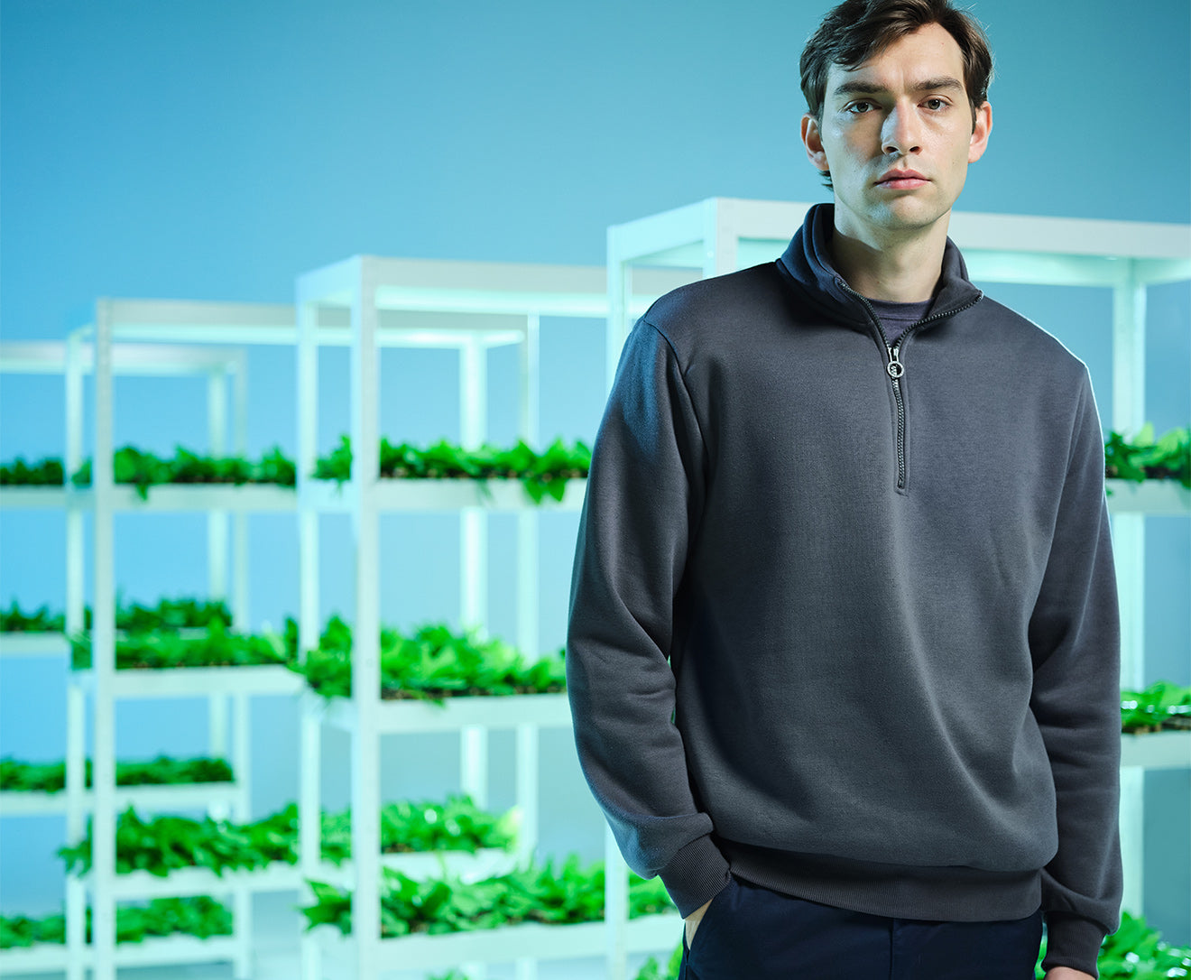 - 35% Sustainable Cotton/65% polyester brush back sweat