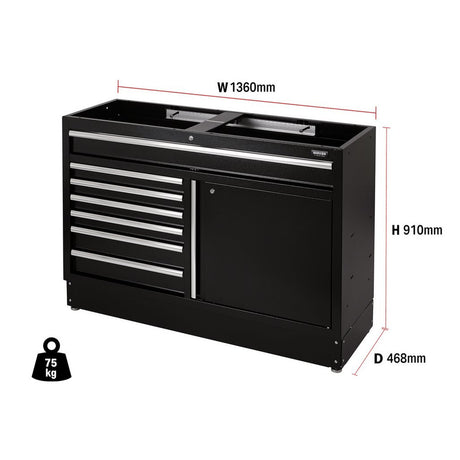 Draper Tools Bunker Modular Floor Cabinet, 7 Drawer, 1360mm