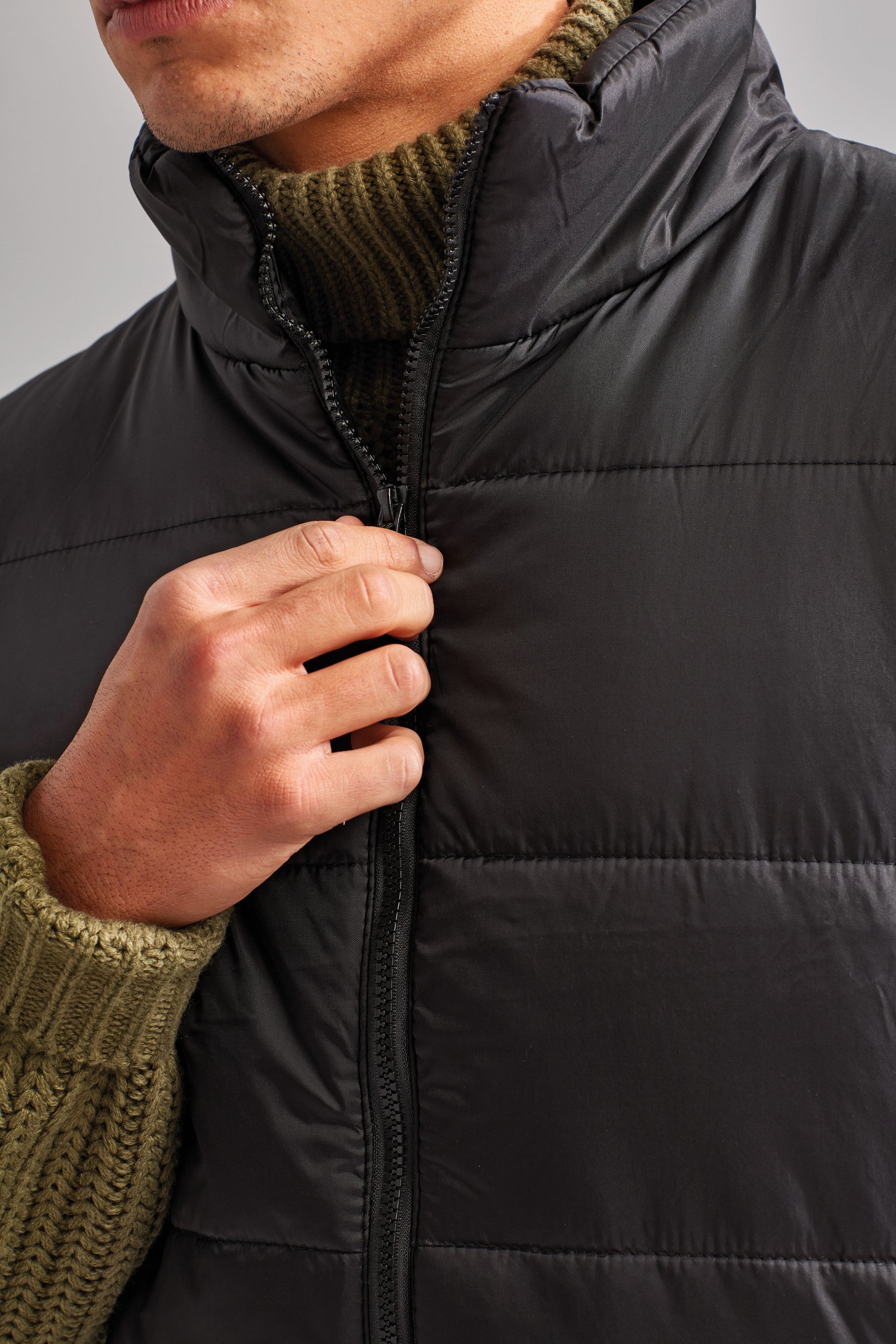 Tonal coil zip on centre front with signature zip puller. Horizontal stitched wide baffles. Fully-lined in tonal polyester. Welt pockets in internal zipped opening. Smartphone friendly - internal shockcord loop for headphone wire attachment. 270gsm lightweight polyester fill. Internal back neck hanger loop. Internal zipped opening for embroidery access. Internal chest patch pocket with hook and loop fastening. Product contains no branded neck label.* Removable Kimble or looped garment tags. Inner seam label holds important product information on one label with a second label containing brand information which can be cut-away.