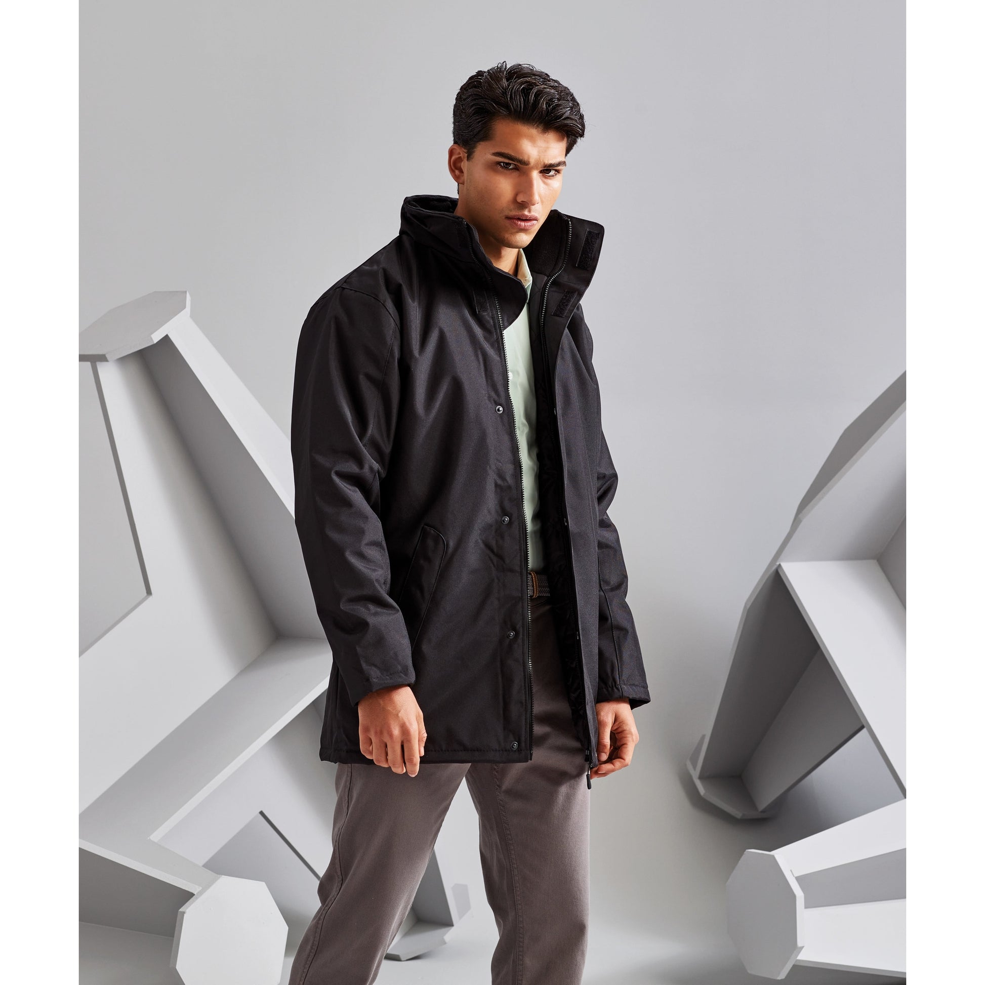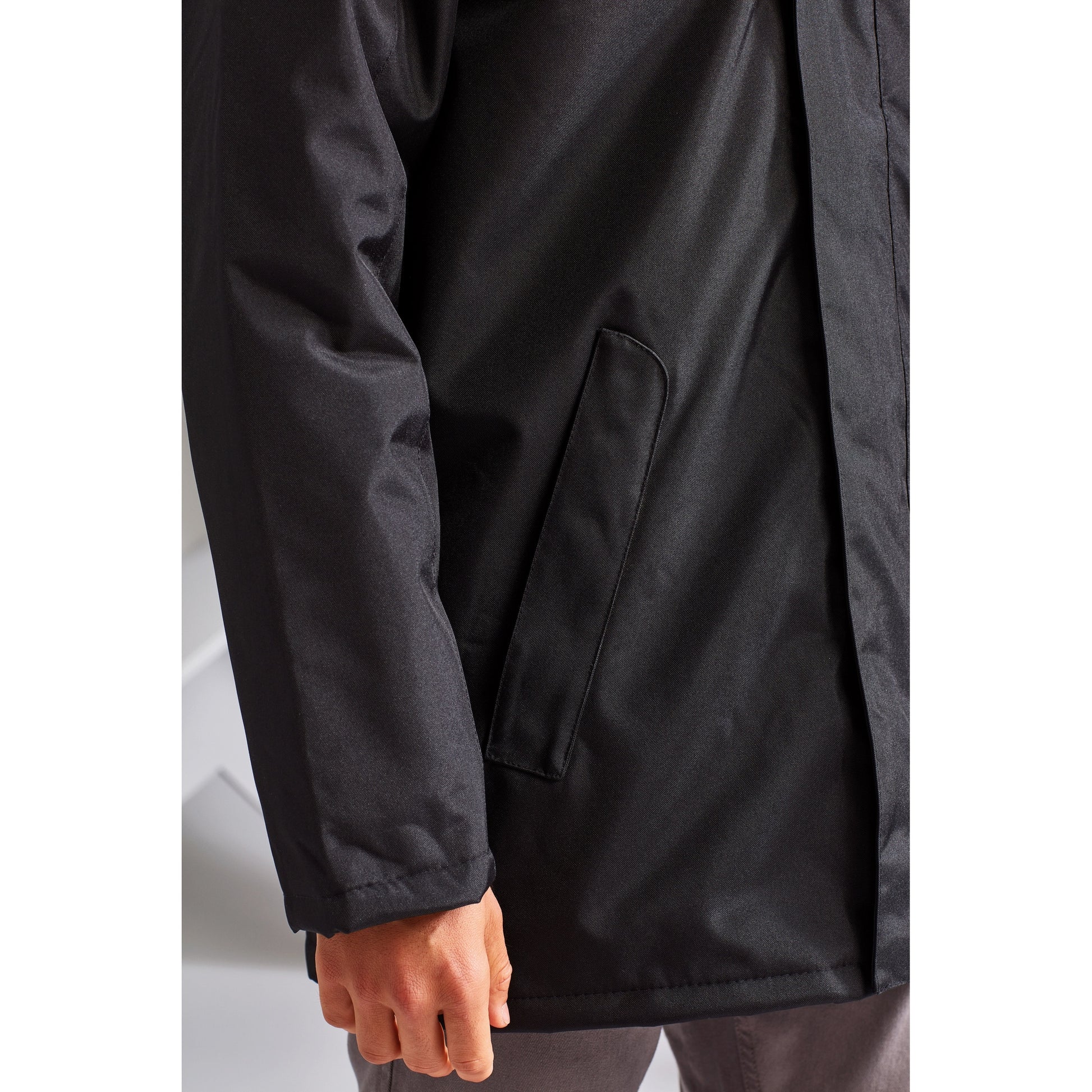 Warm and versatile parka jacket. Water resistant. Wind resistant. Warm polyfill quilted lining. Concealed adjustable storm hood. Full zip with storm flap. Snug, fleece lined collar with chin guard. Storm cuffs. Two zippered front pockets. Two interior pockets. Decoration flexible concealed interior zip for decoration access. Easy re-label system. Product contains no branded neck label.* Removable Kimble or looped garment tags. Inner seam label holds important product information on one label with a second label containing brand information which can be cut-away.