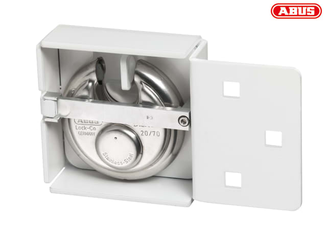 The ABUS 141 Series Diskus® Integral Van Lock has a universal hasp and can be used to secure vans, trucks, garages, sheds or any other outward opening double doors. The solid metal case protects the padlock against attacks and has a corrosion-resistant powder-coated finish. There is also a cylinder cap to prevent dirt and moisture ingress. Easy to operate with one hand due to handy frontal cylinder access.