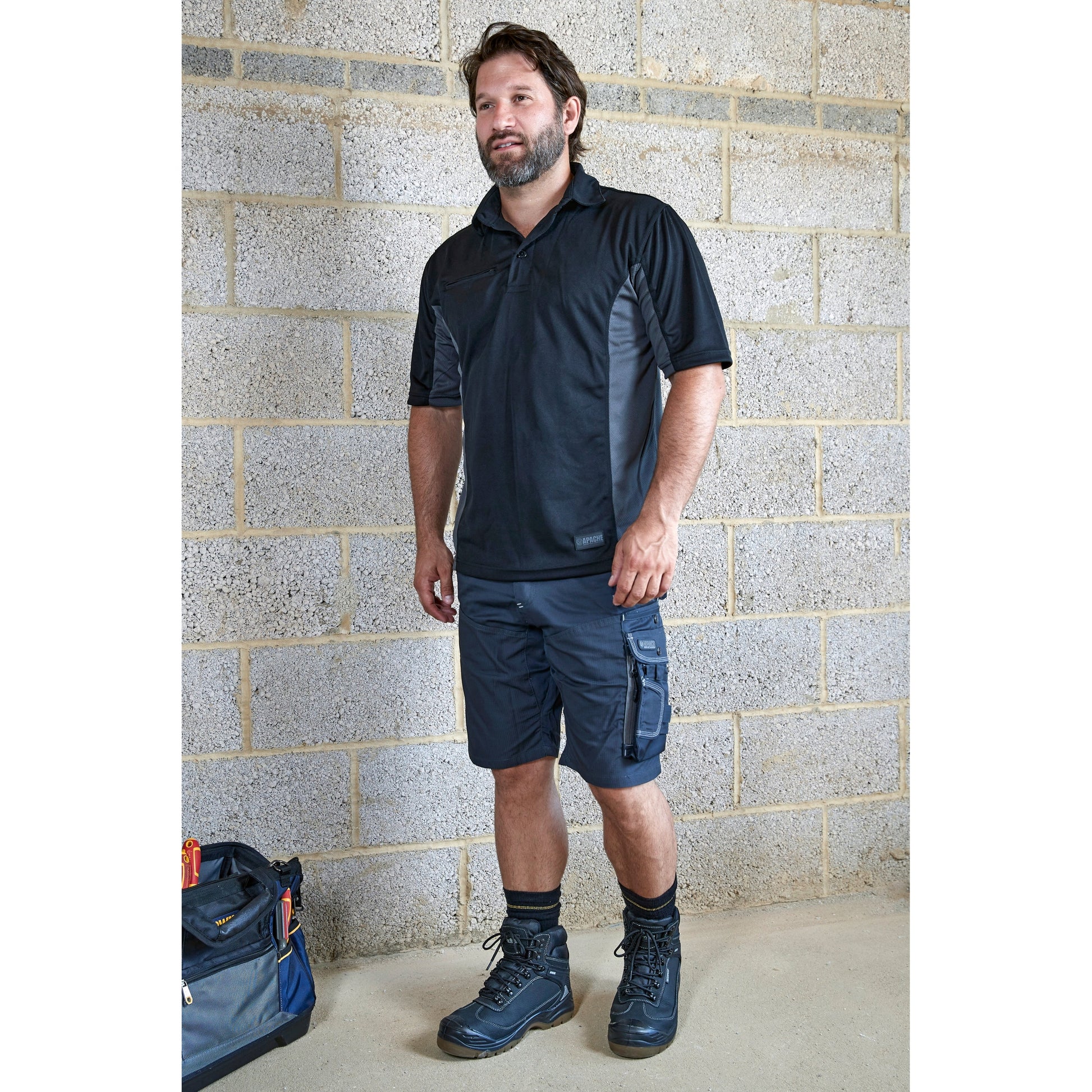 The steel grey ATS cargo short is made from a lightweight technical fabric and has an active waist design as well as reinforced Cordura utility pockets. Multi pocket design. Wide tool belt loops. Machine Washable.