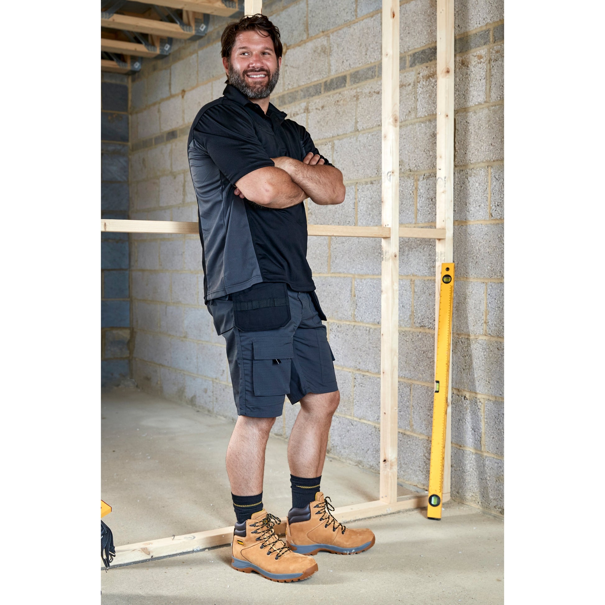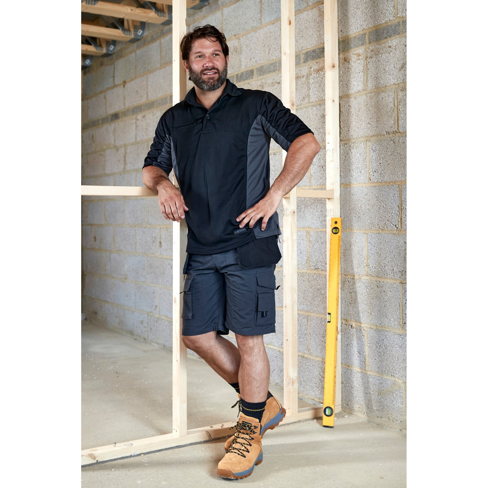 A lightweight rip-stop polycotton work short with Cordura holster pockets. A low rise comfort fit waist. Two rear velcro pockets. Side cargo pocket to left leg and large phone pocket to right leg. Tunnel belt loop and YKK zip. A good functional work short for those warmer days.