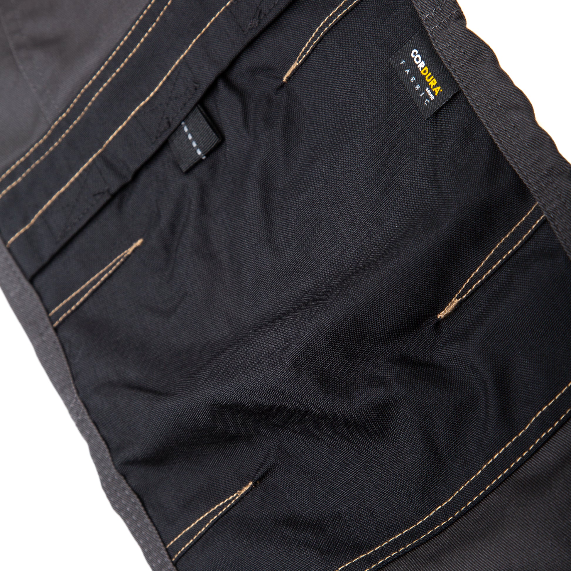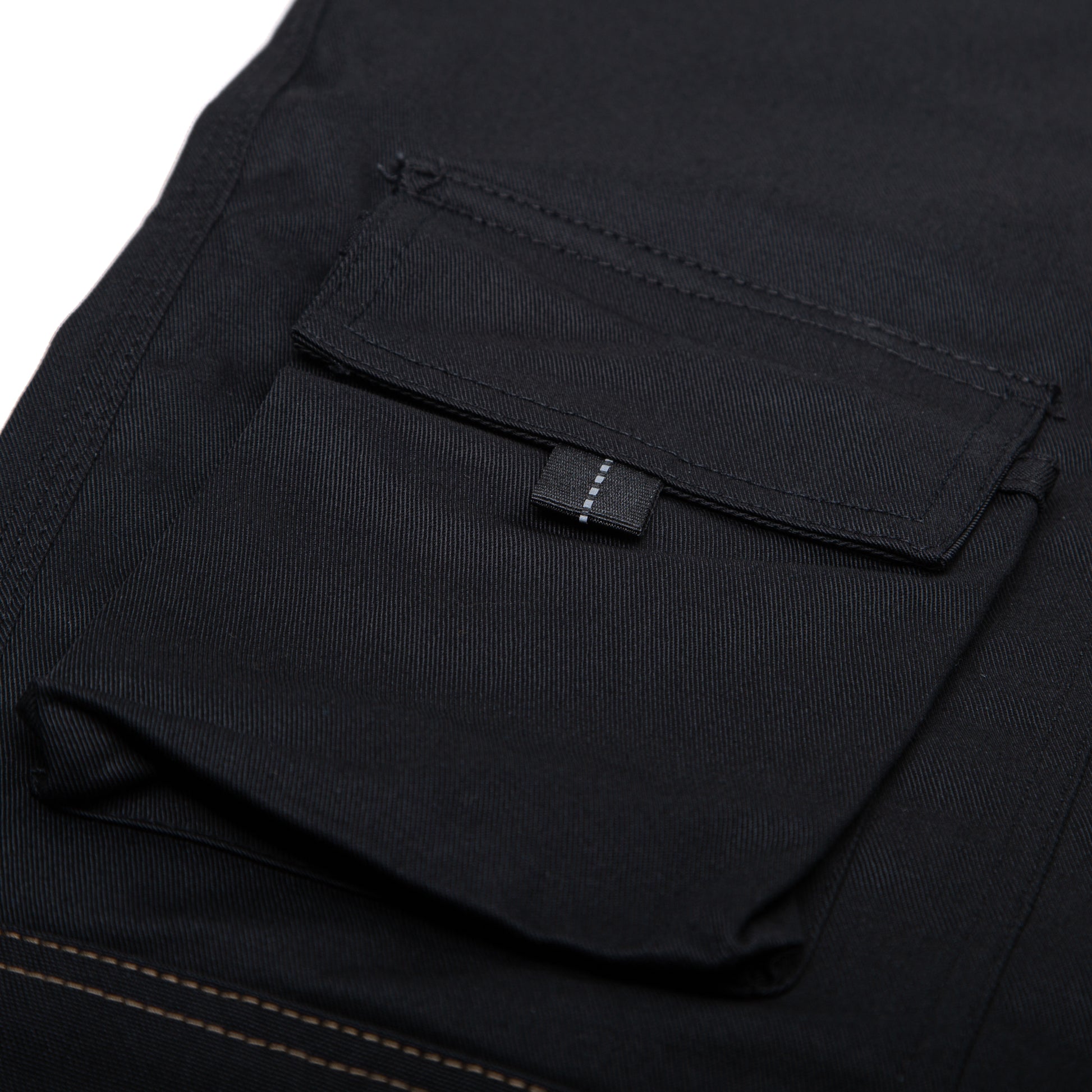 A functional work trouser featuring Cordura holster pockets and knee pad pockets. Cordura reinforced hem and reflective piping. Side cargo pocket and large phone pocket to oppostie leg. Triple stitched in key areas. Low rise comfort waist. Tunnel belt loop and YKK zip. A good all round tradesman trouser.