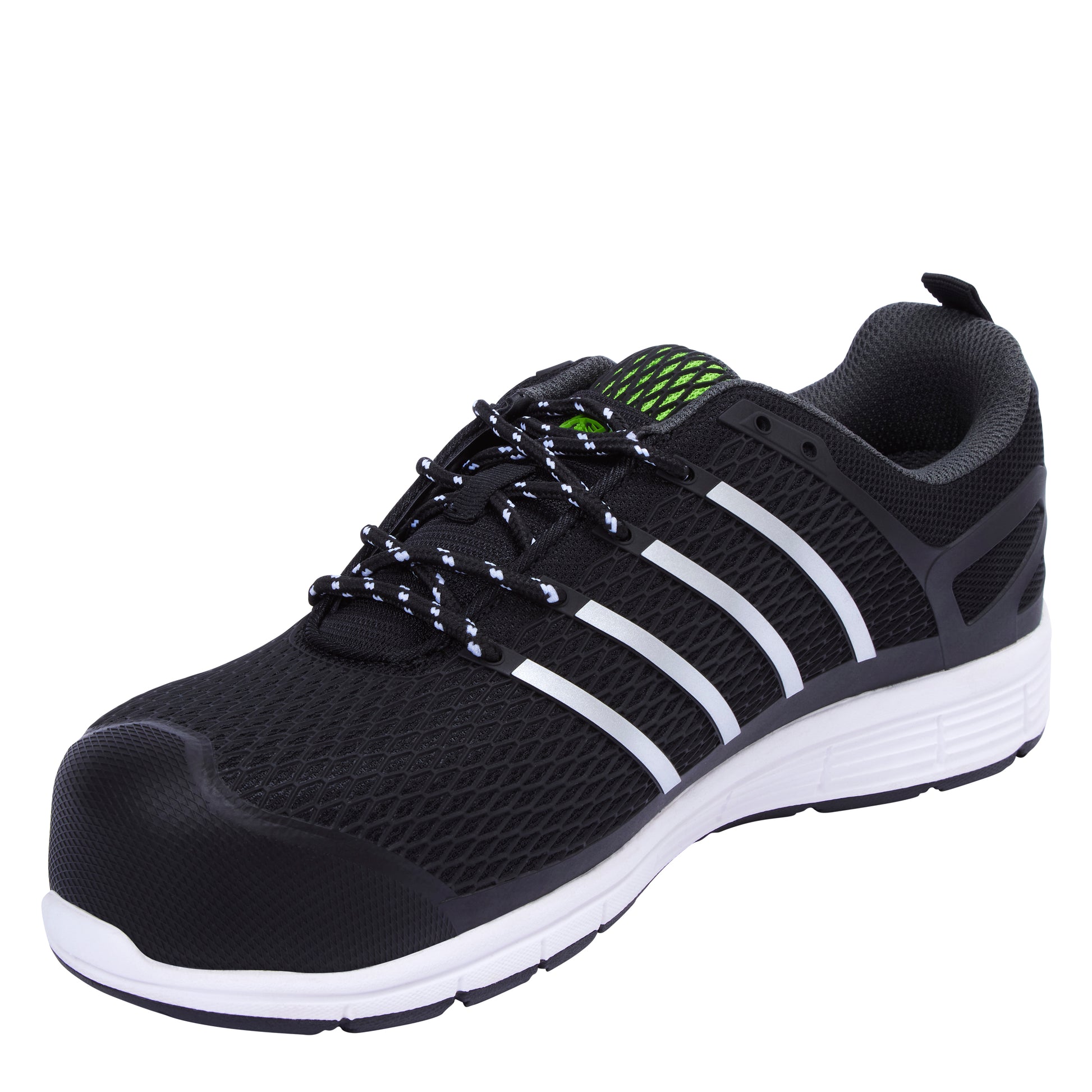 Polyurethane fine moulded upper with padded bellows tongue and collar. Waterproof and breathable inner lining. Aluminium toe cap and composite midsole protection. Phylon/Rubber outsole. PU comfort insole. Stylish sports trainer for light industrial use.