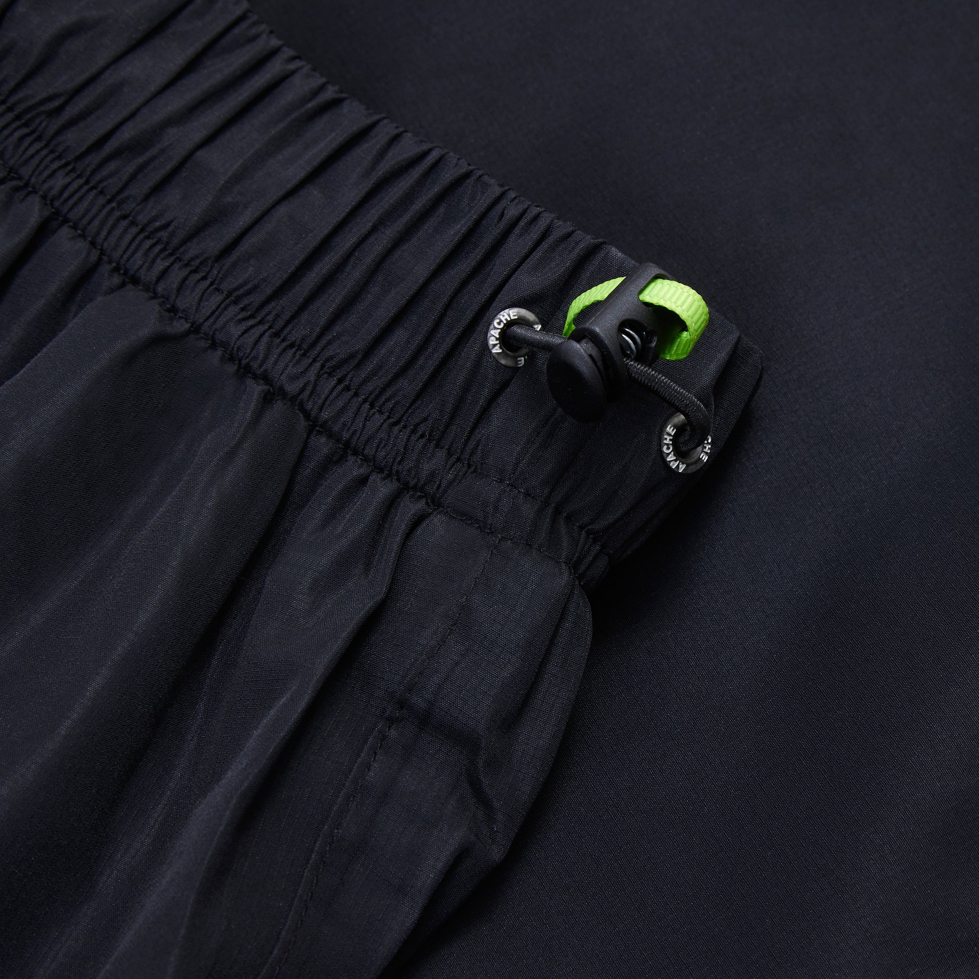 The Apache Quebec waterproof trousers are made with high performance in mind. The trousers are 100% ripstop fabric with a PU coating, which is lightweight and allows us to reach a 3000mm waterproof specification, as well as a 3,000 breathable specification. There is a dual zip on the outside of each leg, the dual zip is covered and secured with snap fastenings which run from the ankle to the hip, allowing you to move freely and practically. The waist on the trouser is elasticated and there is also a toggle fastening. Adjustable cuff snaps on both ankles. The waterproof trouser built for performance, from Apache.