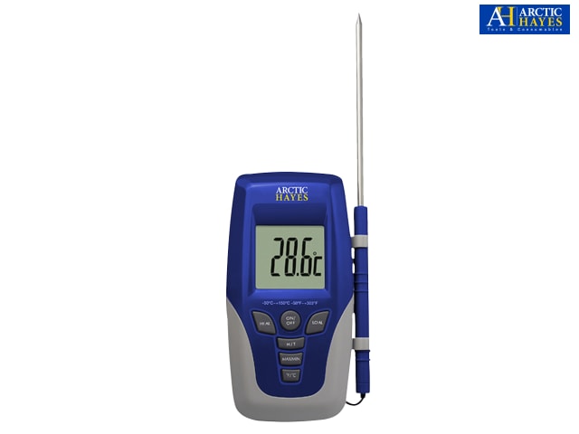 The Arctic Hayes Digital Thermometer has a modern compact design that can read the temperature of liquids, semi-solids and solids. The user can select °C or °F readings. Other features include auto power-off, Max. and Min. readings and a programmable audible alarm at the high and low-temperature limits.