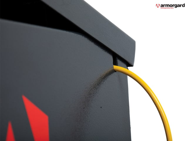 Fitted with ultra-robust 5-lever deadlock and anti-cut rollers in deadbolt. Strong chubb-style keys supplied. There is also a handy data plate with serial numbers for overnight key replacements. The lid is fitted with gas struts, plus a super-safe SlamStop™ feature. There is also a handy cable passing point for up to 2 cables.
