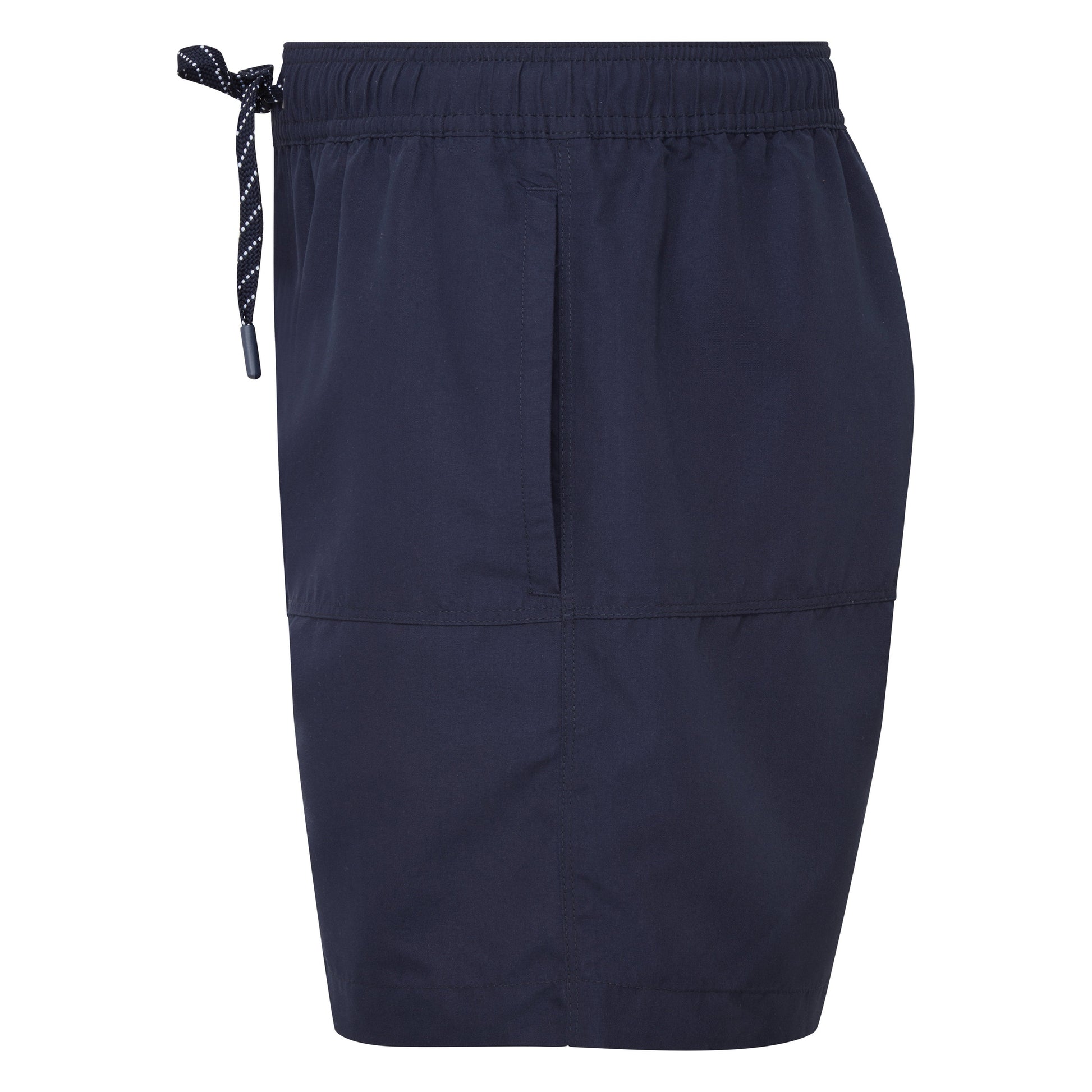 Panelled swim shorts. Tie waist. Two eyelets. Striped tie cord with caps. Elasticated waist. Mesh inner lining. Two side pockets. Single zip-fastening pocket on the back. Certified Sedex.Product contains no branded neck label.* Removable Kimble or looped garment tags. Inner seam label holds important product information on one label with a second label containing brand information which can be cut-away.*Please note old stock may contain a fixed branded label