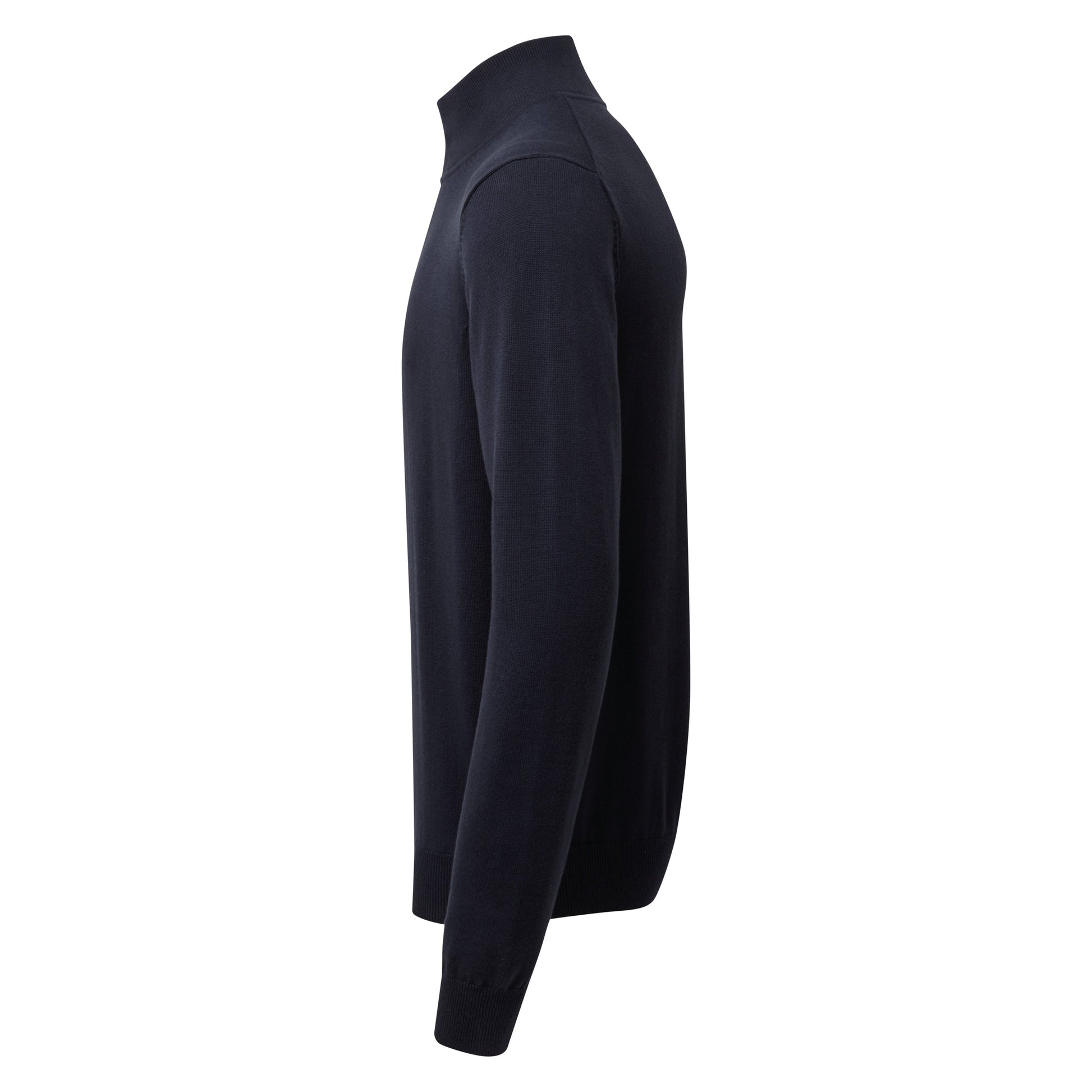 Embrace a modern silhouette with the cotton blend 1/4 zip sweater. A perfect piece for between seasons layering.