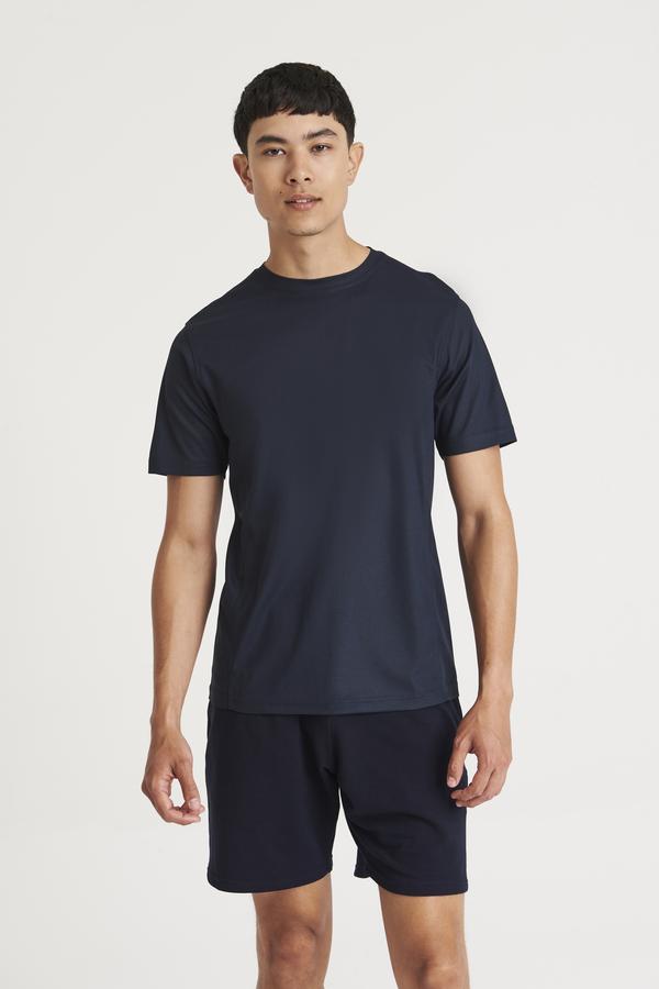 Self-fabric crew neck. Set in sleeve design. Half moon yoke. Self-fabric side panels. Enhanced SuperCool fabric with superior wicking properties and anti-bacterial finish. Self-fabric sapphire blue taped back neck. Twin needle stitching detail. Simple tear off label makes it perfect for rebranding. UPF 30+ UV protection. Worldwide Responsible Accredited Production (WRAP) certified production. Vegan certified. BSCI certified.
