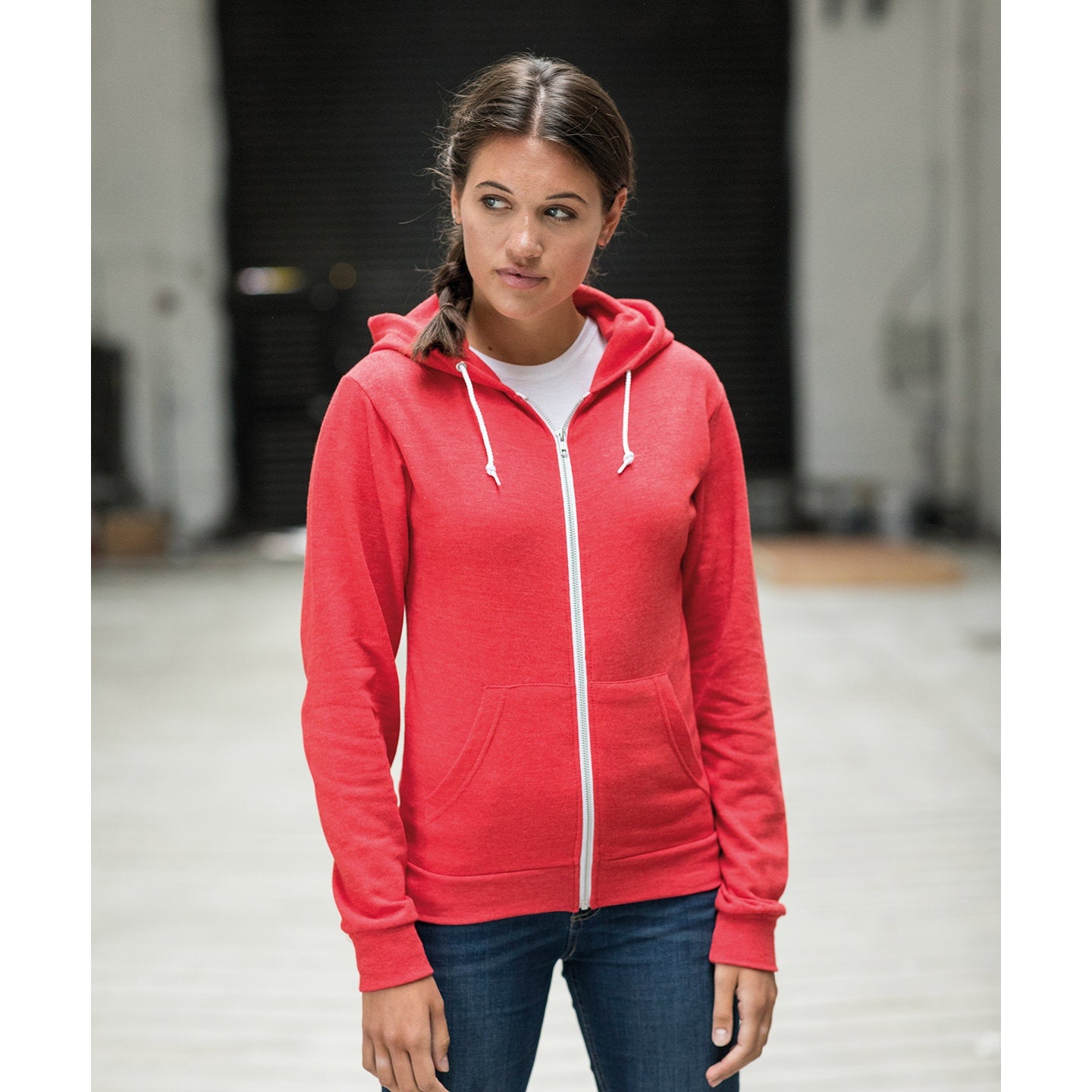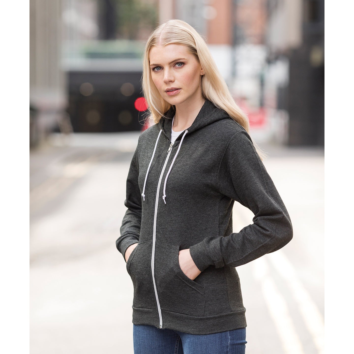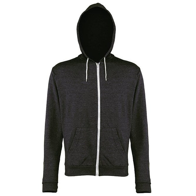 Lightweight full zip hoodie with metal zip. Slim fit. Soft feel lightweight fabric. Twin needle stitching detailing. Double fabric hood. Contrast white drawcords. Kangaroo pouch pocket. Ribbed cuff and hem. Worldwide Responsible Accredited Production (WRAP) certified production. Simple tear out label makes it perfect for rebranding. Brushed inner fleece. WRAP certified. SEDEX certified. Vegan certified.