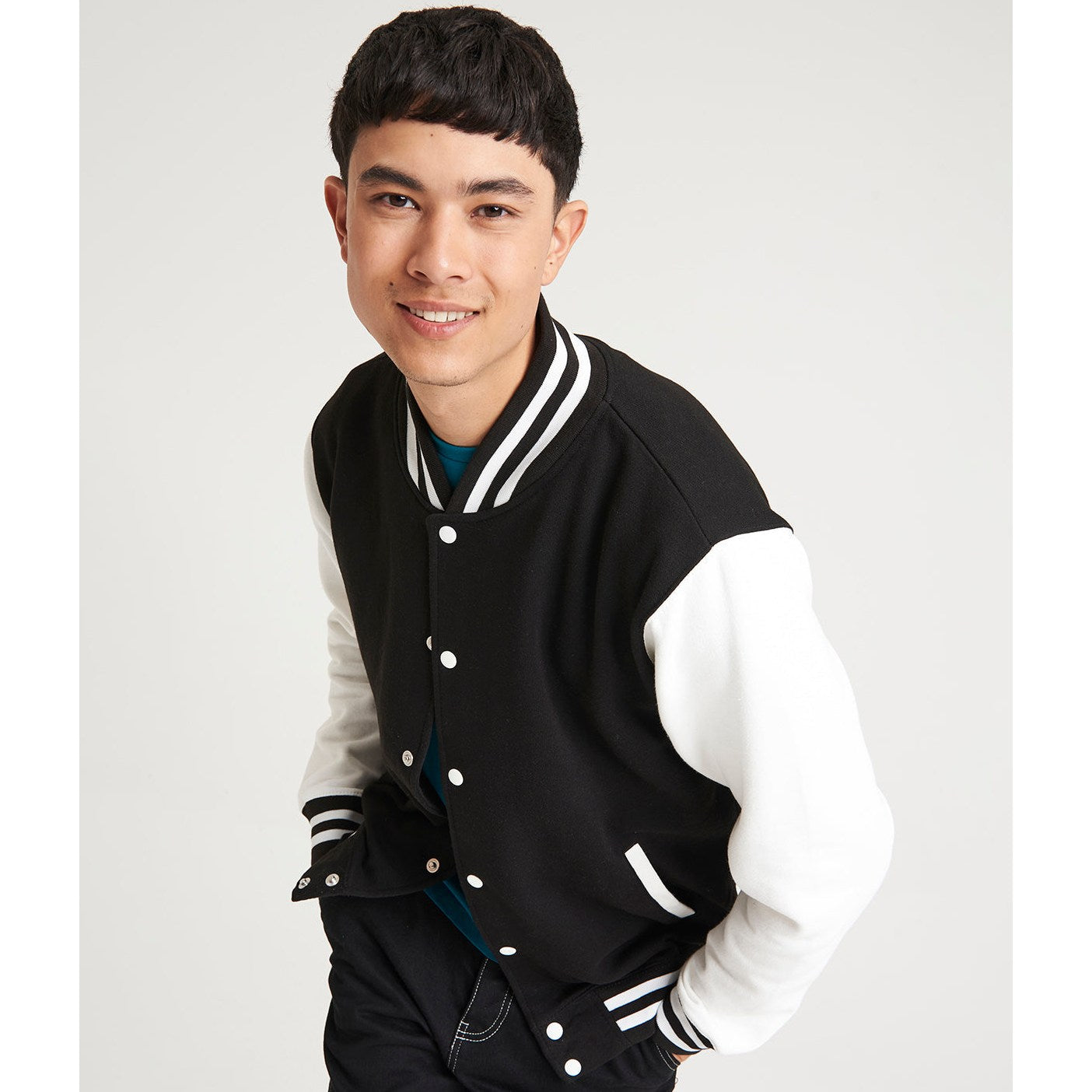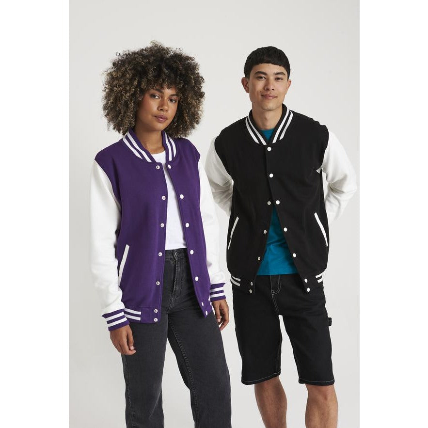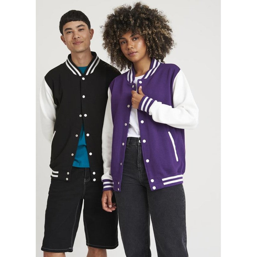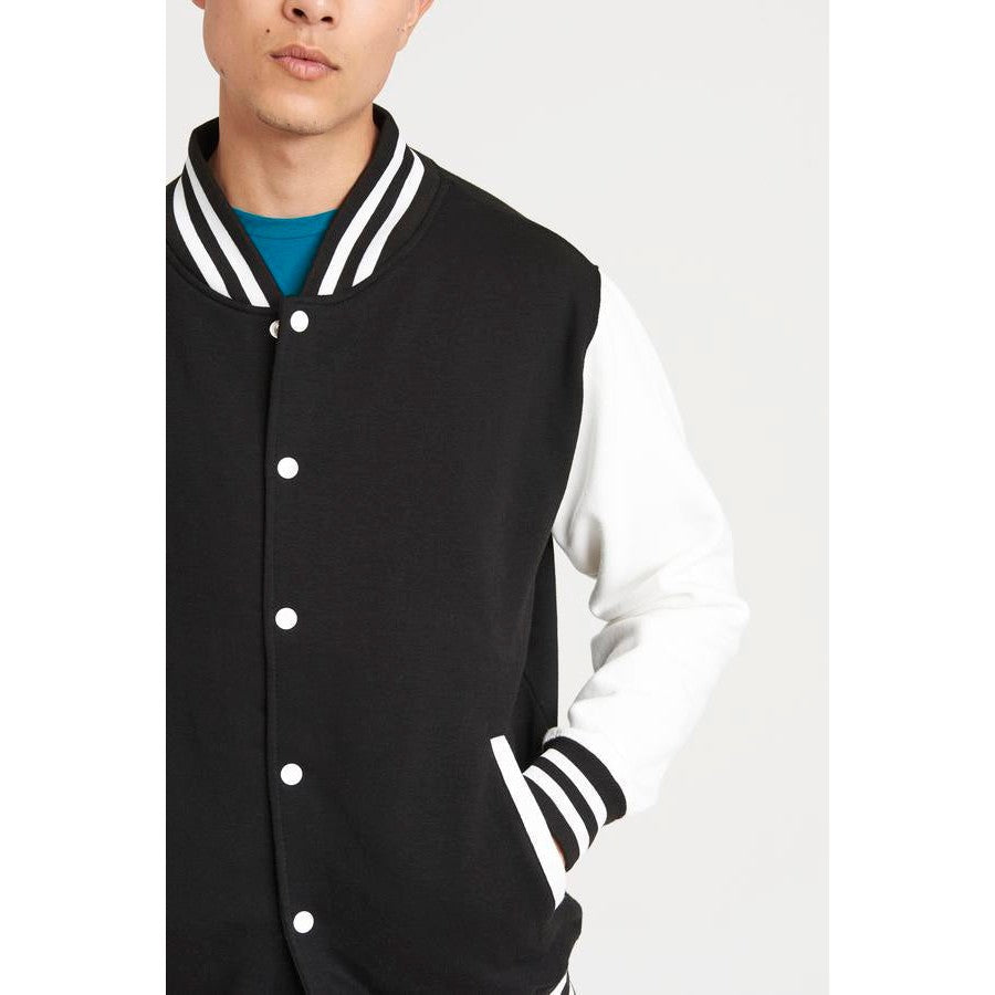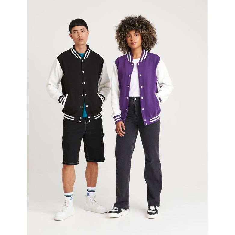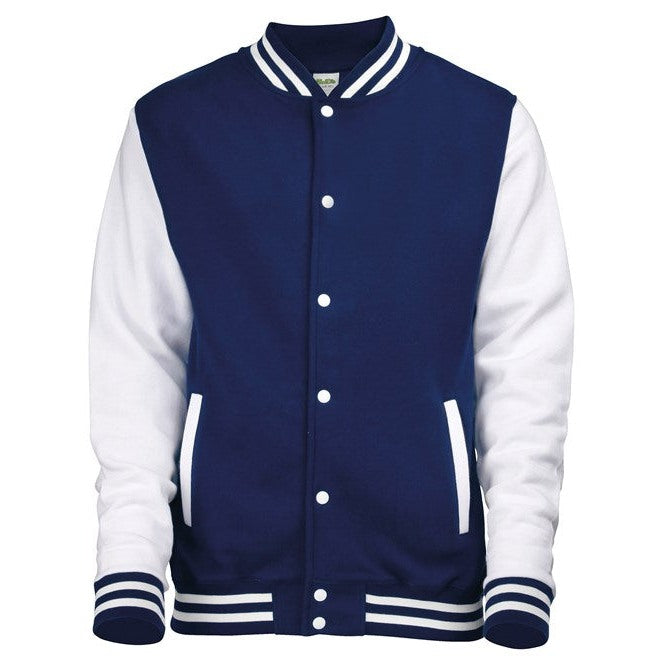 Get the varsity look with this classic American inspired jacket. Contrast sleeves and poppers complete this look which is fashioned from our heavyweight fabric which is ideal for decoration.