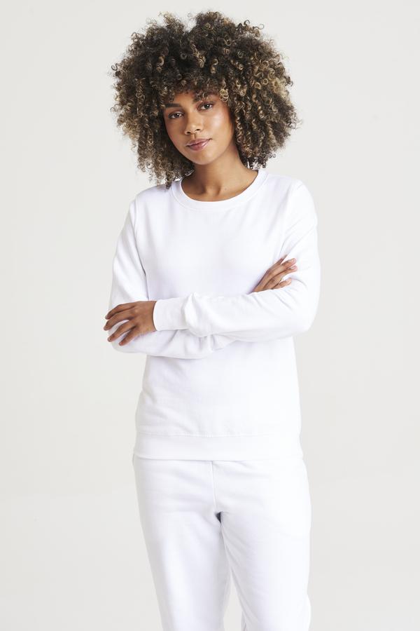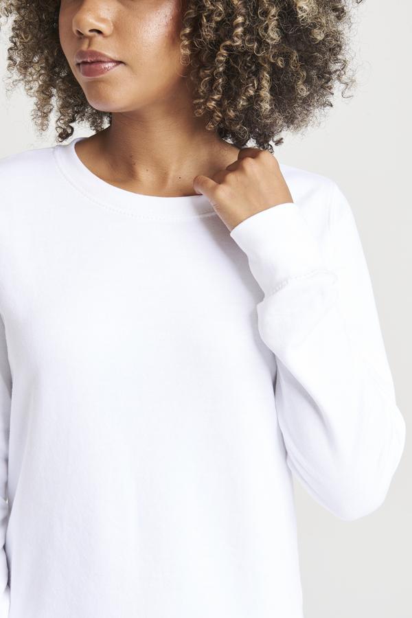Women’s classic fit. Crew neckline. Twin-needle stitching. Brushed inner fleece. Ribbed cuffs and hem. Soft cotton faced fabric creates ideal printing surface. Simple tear-out label makes it perfect for rebranding. WRAP certified. SEDEX certified. Vegan certified.
