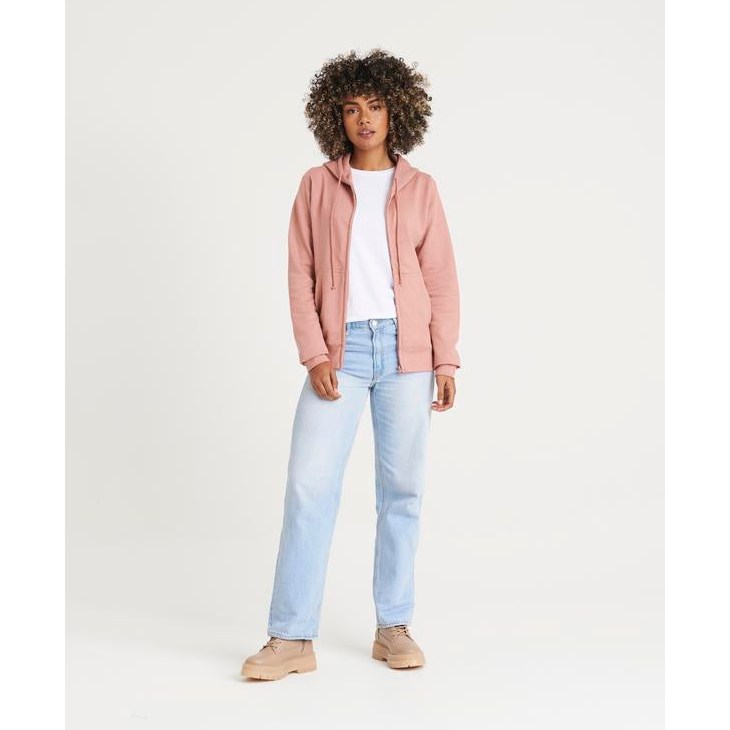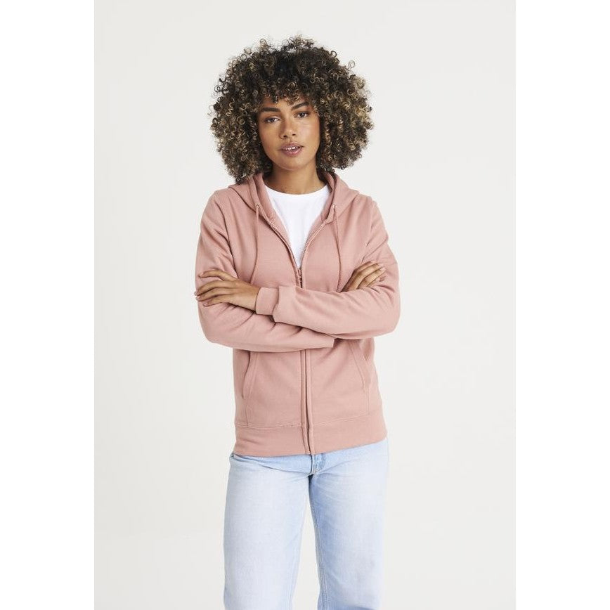Full-zip zoodie. Women’s relaxed fit. Covered main plastic YKK zip. Twin-needle stitching detail. Double-fabric hood. Self-coloured drawcords. Kangaroo pouch pockets. Simple tear-out label makes it perfect for rebranding. Brushed inner fleece. Ribbed cuffs and hem. Soft cotton-faced fabric creates the ideal printing surface. Certified WRAP, SEDEX. PETA APPROVED VEGAN.