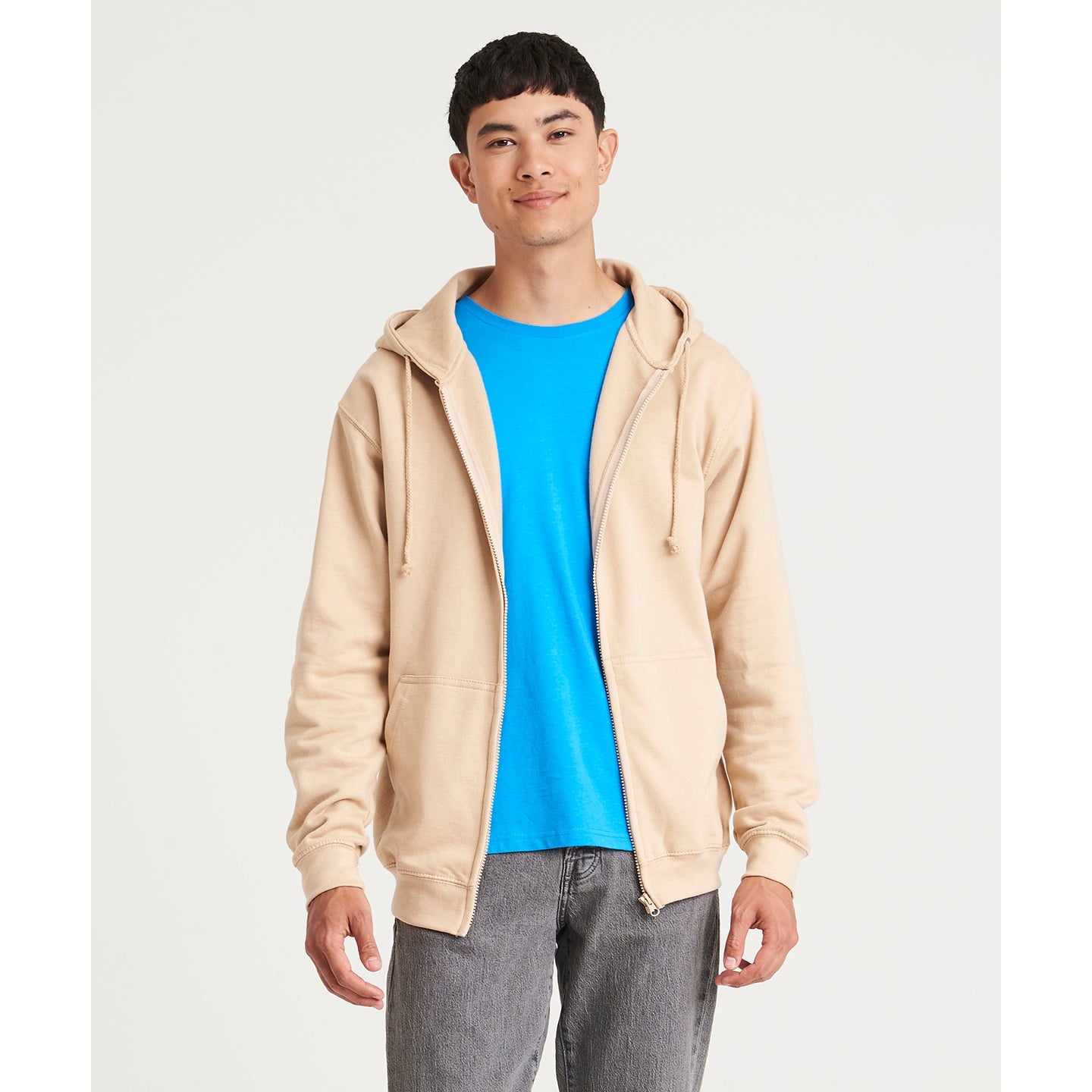 Full zip hoodie with a covered main zip with self fabric. Twin needle stitching detailing and double fabric hood with self coloured cords and kangaroo pouch pocket. Ribbed cuff and hem and self coloured twill tape puller. Worldwide Responsible Accredited Production (WRAP) certified production. Soft cotton faced fabric creates ideal printing surface. Simple tear out label makes it perferct for rebranding. Brushed inner fleece. WRAP certified. SEDEX certified. Vegan certified.