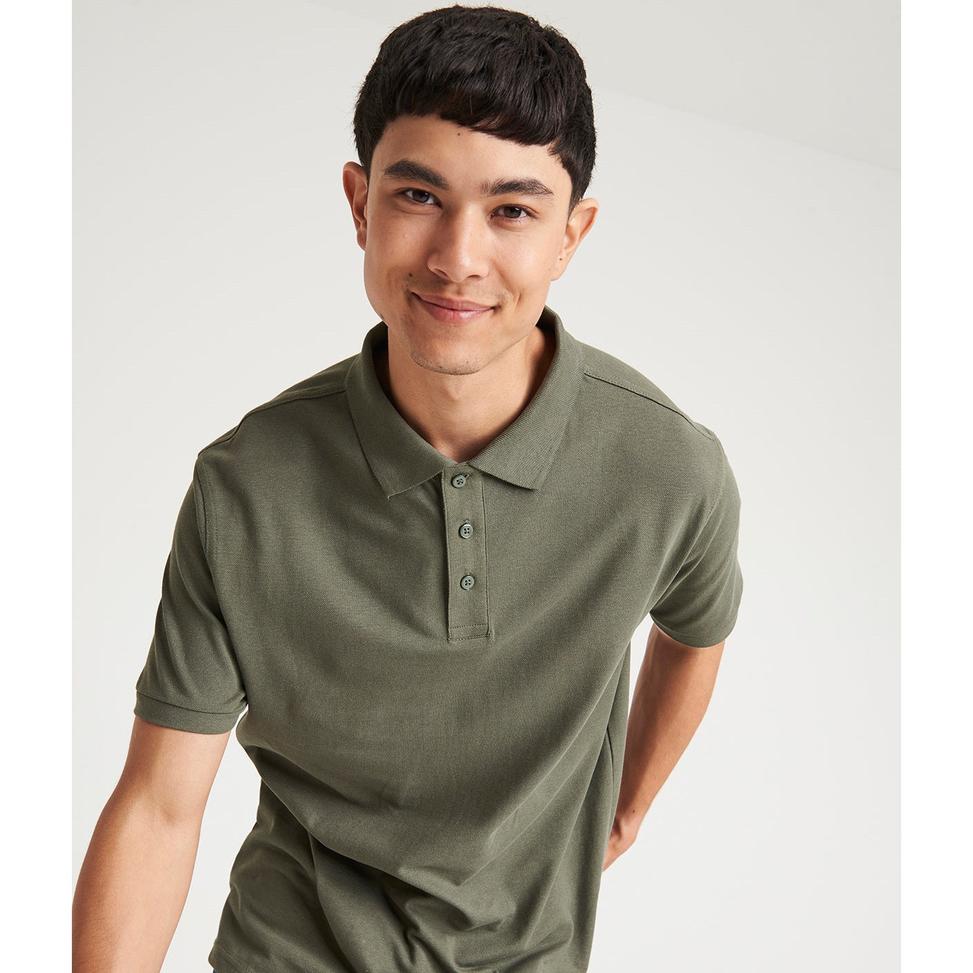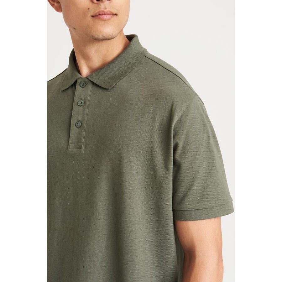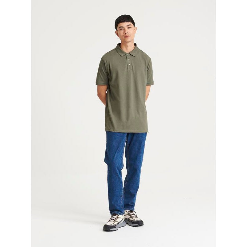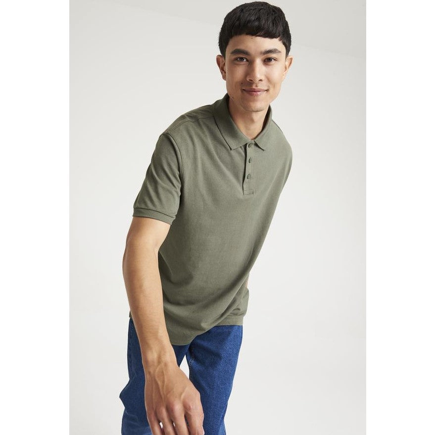 Modern and stylish fit with side vents. 3-button placket with dyed-to-match buttons and spare button. Cuffed short sleeves. Taped neck. Twin-needle stitching on hem. Sedex certified. Vegan certified.