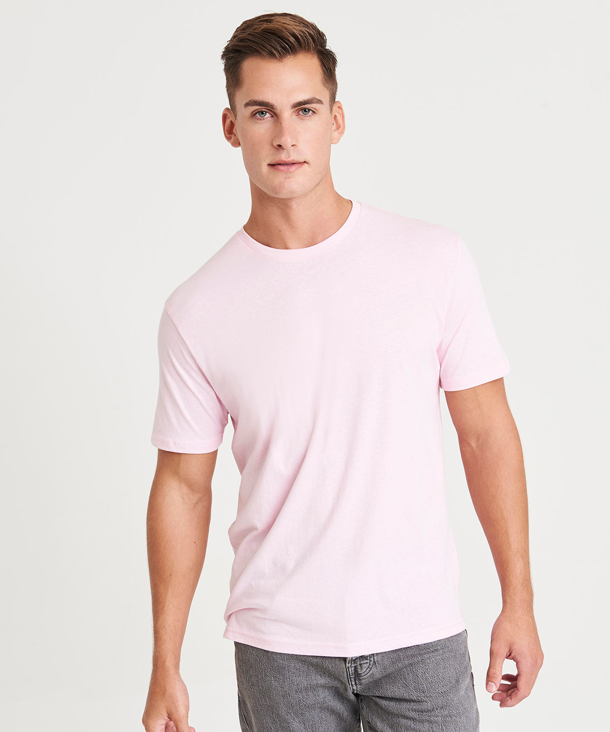 Modern fit. Short sleeves. Side seams. Taped neck. Ribbed crew neck. Twin-needle stitching detail on sleeve and bottom hem. Size label only for easy rebranding - colour coded black for unisex. Sedex certified. Vegan certified.