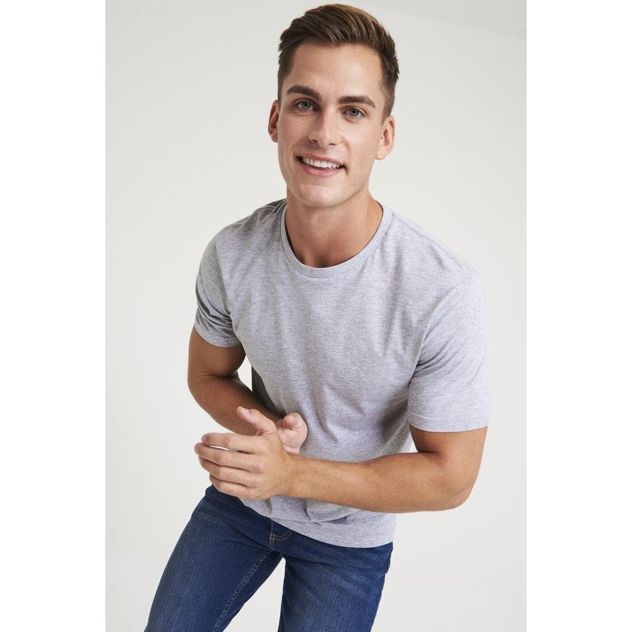 Modern fit short sleeved T. Size tab label. Triblend fabric for style and comfort. Taped neck. Twin-needle stitching on sleeves and bottom hem. Ribbed crew neck style. soft-feel fabric. Side seams. Set-in sleeves. Worldwide Responsible Accredited Production (WRAP) certified production. WRAP certified. Vegan certified. SEDEX certified.