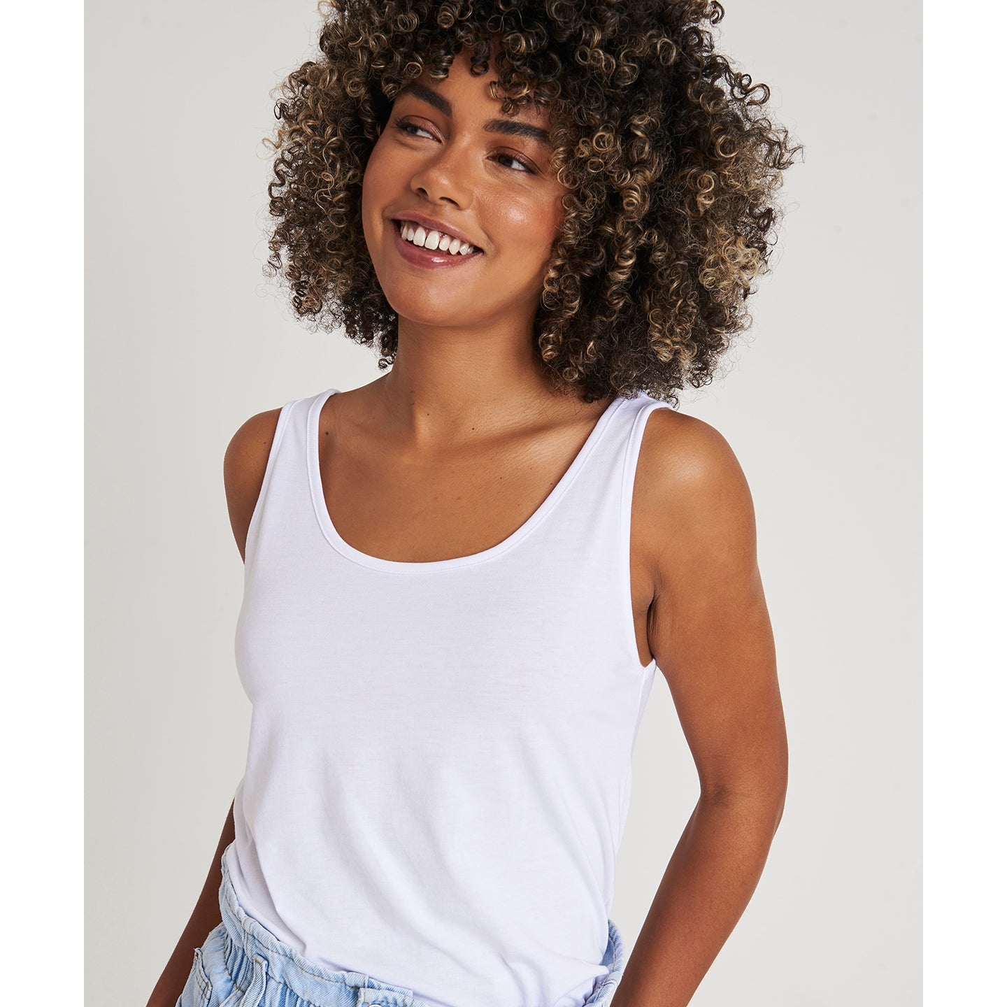 Relaxed fit. Side seams (non-tubular). Size label only, for easy rebranding – colour coded white for women. Triblend fabric for style and comfort. Surface excellent for print or embroidery. Self-fabric binding around neckline and armhole. Twin-needle stitching detail on sleeve and bottom hem.