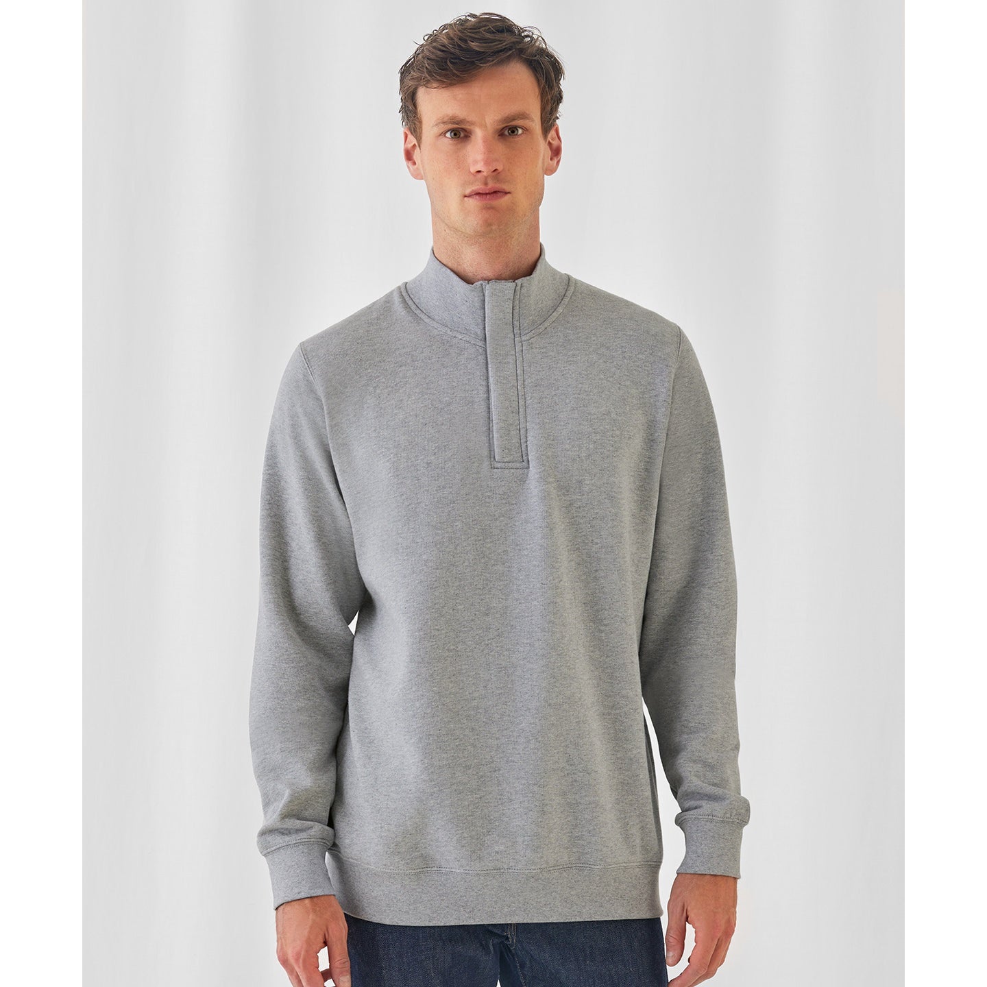 The cotton rich composition (80% cotton, 20% polyester) of the B&C ID.004 basic sweatshirt gives you the efficient blend of decoration result and wearer comfort. Featuring a 1/4 zip on its high 1x1 rib collar and a 2-side covered placket to avoid skin contact with zip.