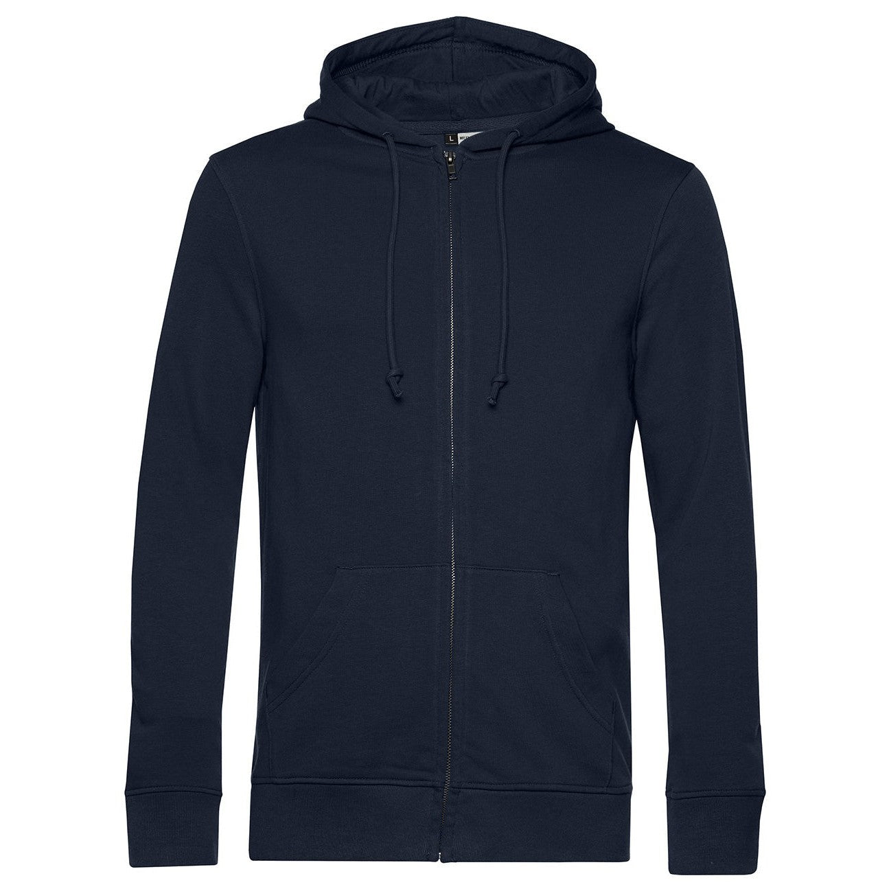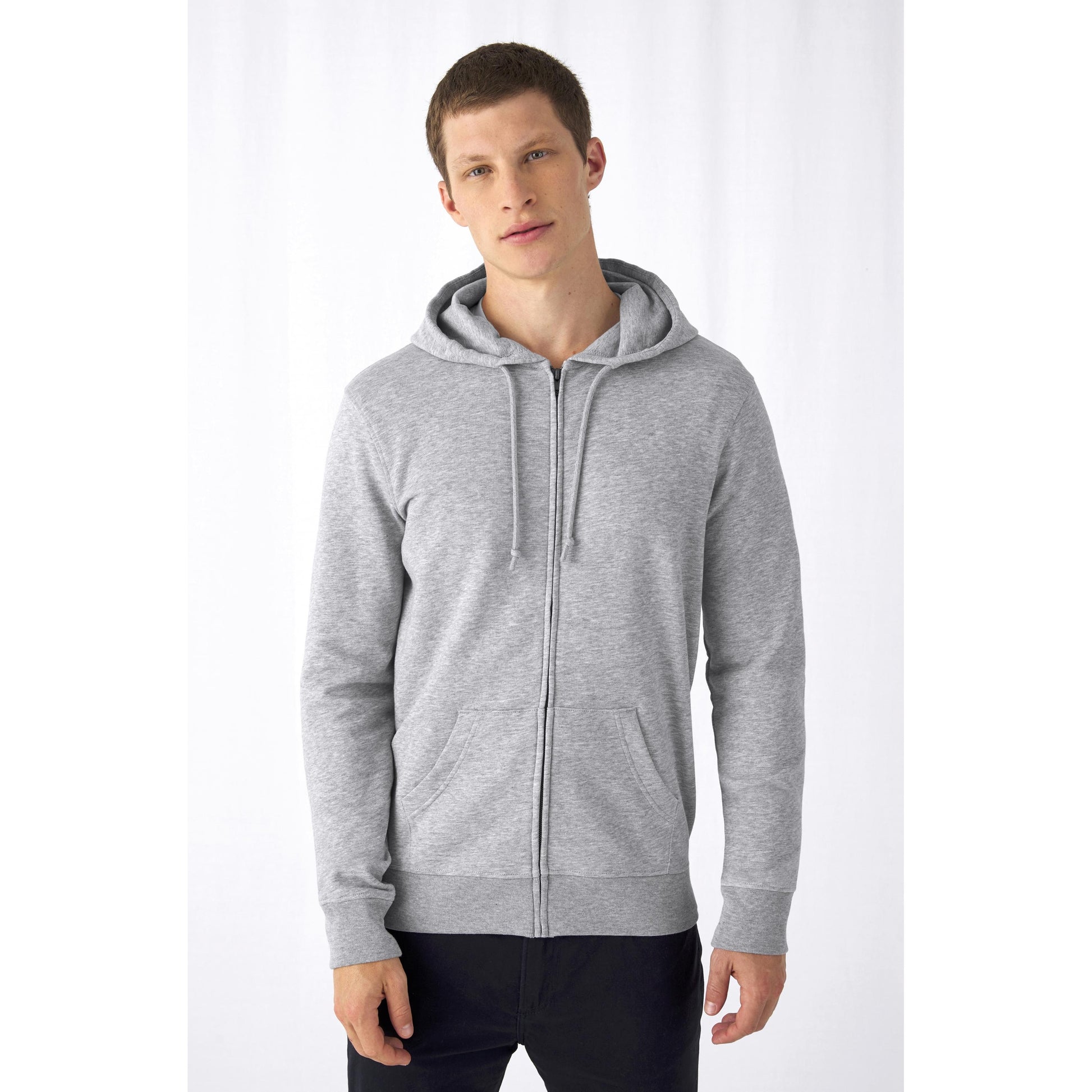 Trendy organic zipped hooded sweatshirt with retail fashion oriented look and feel. Strong styling with great fitting and perfect length. Side seams ensure the best fit and a masculine silhouette. Visible "Hi, I'm Organic" neck tab to highlight the organic value of the garment. Easy branding solution - B&C No Label Solution. Inside single Jersey halfmoon in back to allow easy branding personalisation. Qualitative herringbone neck tape. Retail like features: covered metal zip, single Jersey lined hood, qualitative herringbone neck tape and fashionable drawcord.