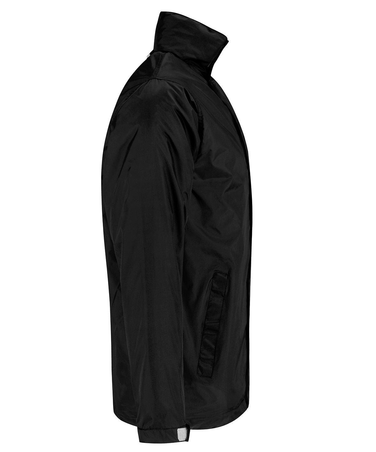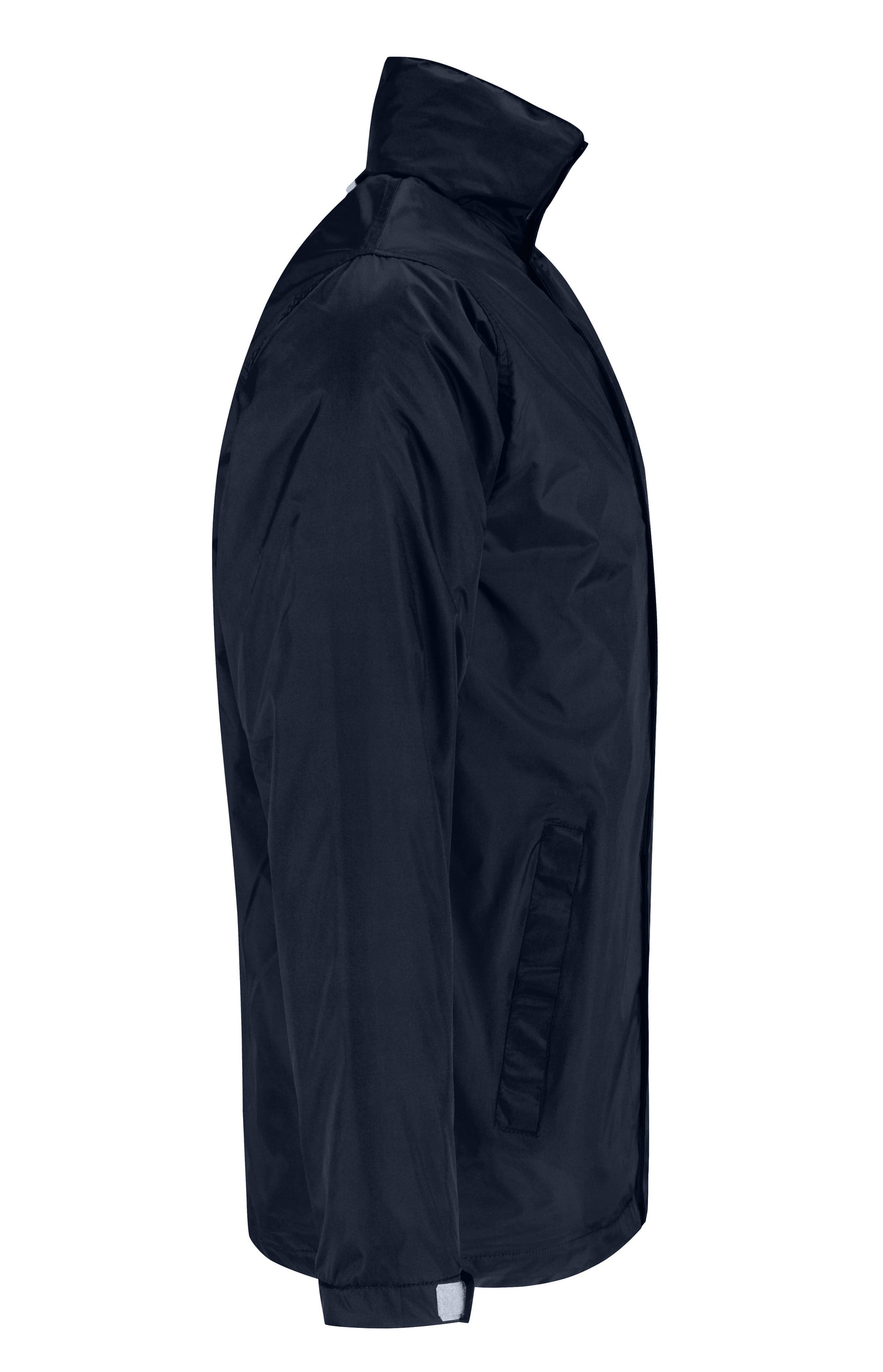 Middle weight jacket with Thermo microfleece lining. Front covered full zip opening with hook and loop fastening closure and zip pull. Adjustable hood concealed inside the collar with easy to pull tag. 2 front pockets and 1 inner pocket wallet. Open hem with elasticated cord. 2 easy adjust stoppers. Adjustable cuffs with hook and loop fastening closing tabs. Easy access for decoration via a zip in the lining.