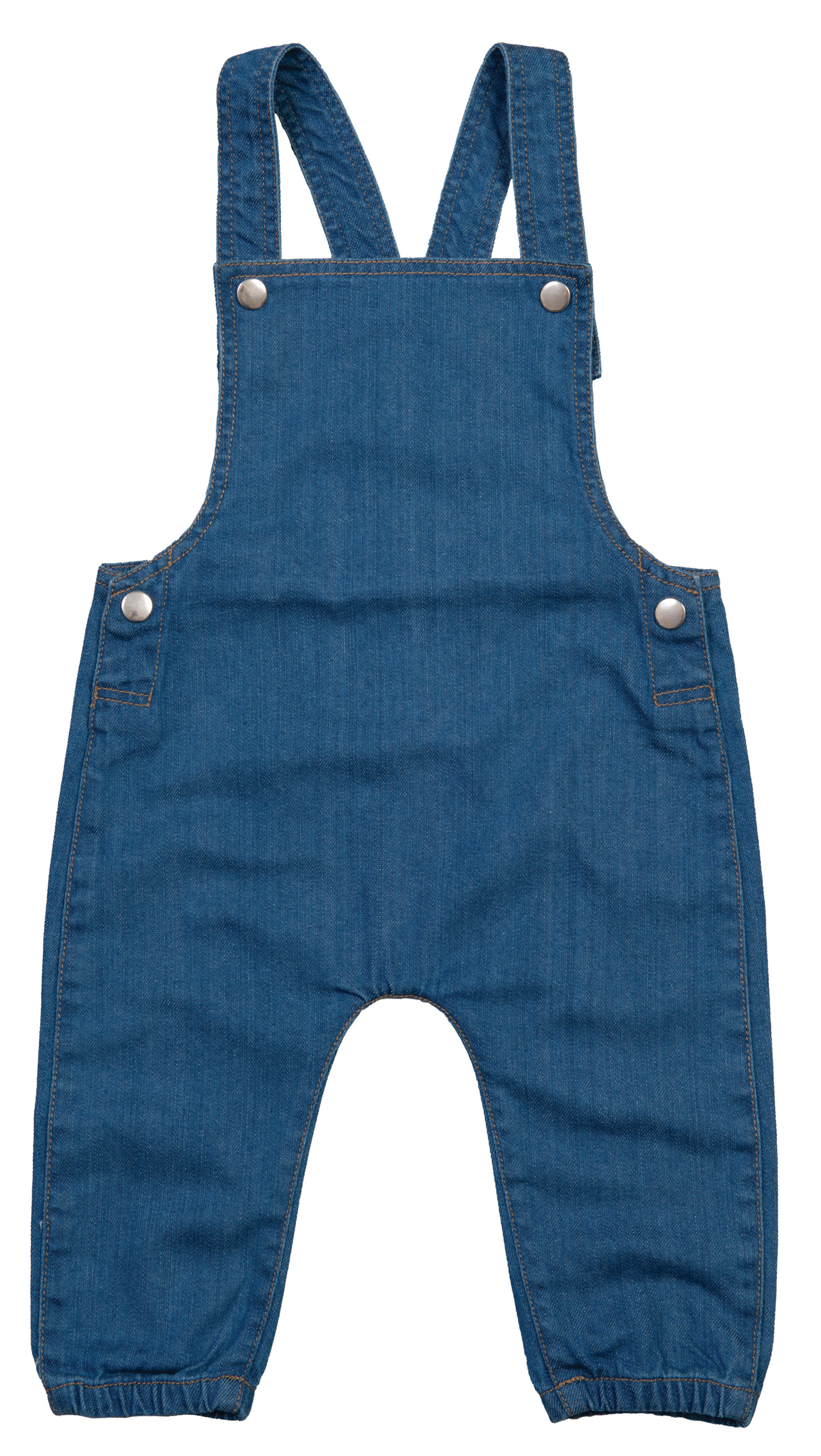 All-in-one dungarees in soft but durable organic denim. Featuring adjustable front poppers at bib and side waist, and straight hems which can be rolled up to suit. Jeans-style, orange stitching is featured throughout the garment. Designed for easiest and optimum decoration potential with no centre front or back seam, but with Tear-out label.