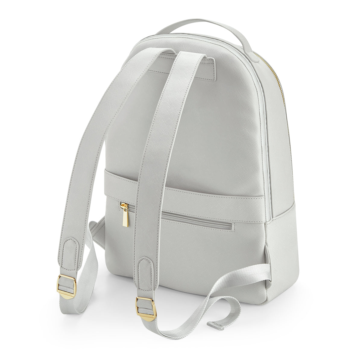 Saffiano fine grain. Zipped main compartment. Internal organisation pocket. Internal water bottle holder. Discreet zipped back panel pocket. Zipped internal valuables pocket. Soft-touch lining. High shine gold metal zips. Wheeled luggage handle strap. Self-fabric adjustable shoulder straps. Grab handle. TearAway label for ease of rebranding. BSCI certified. Reach certified.