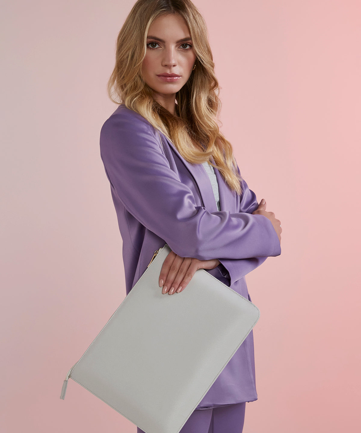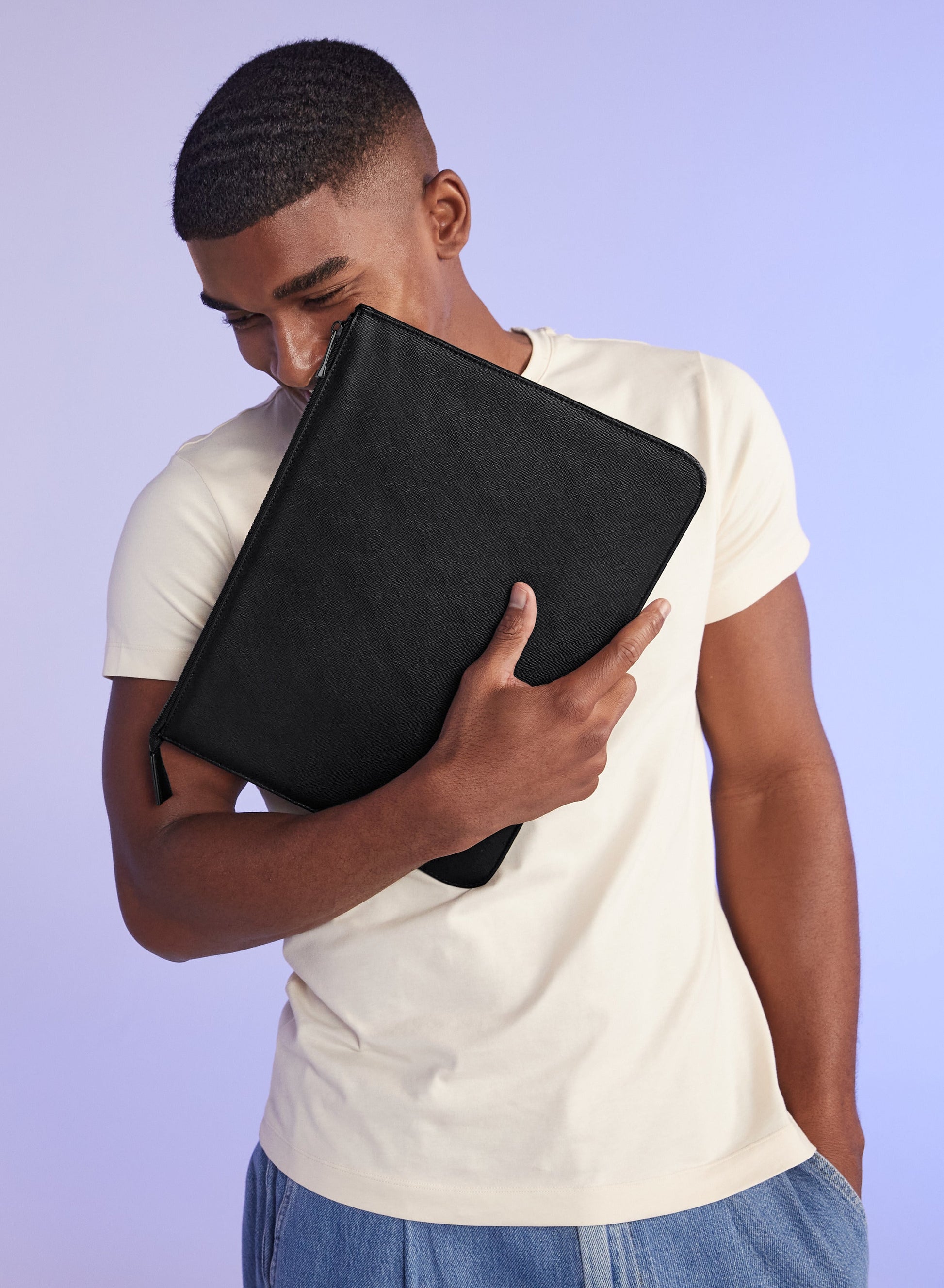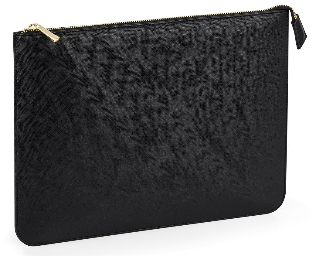 100% Leather-look PU. Saffiano fine grain. Multipurpose use. Soft-touch lining. High-shine gold metal zip. TearAway label for eay rebranding. Designed to comfortably fit A4 folders.
