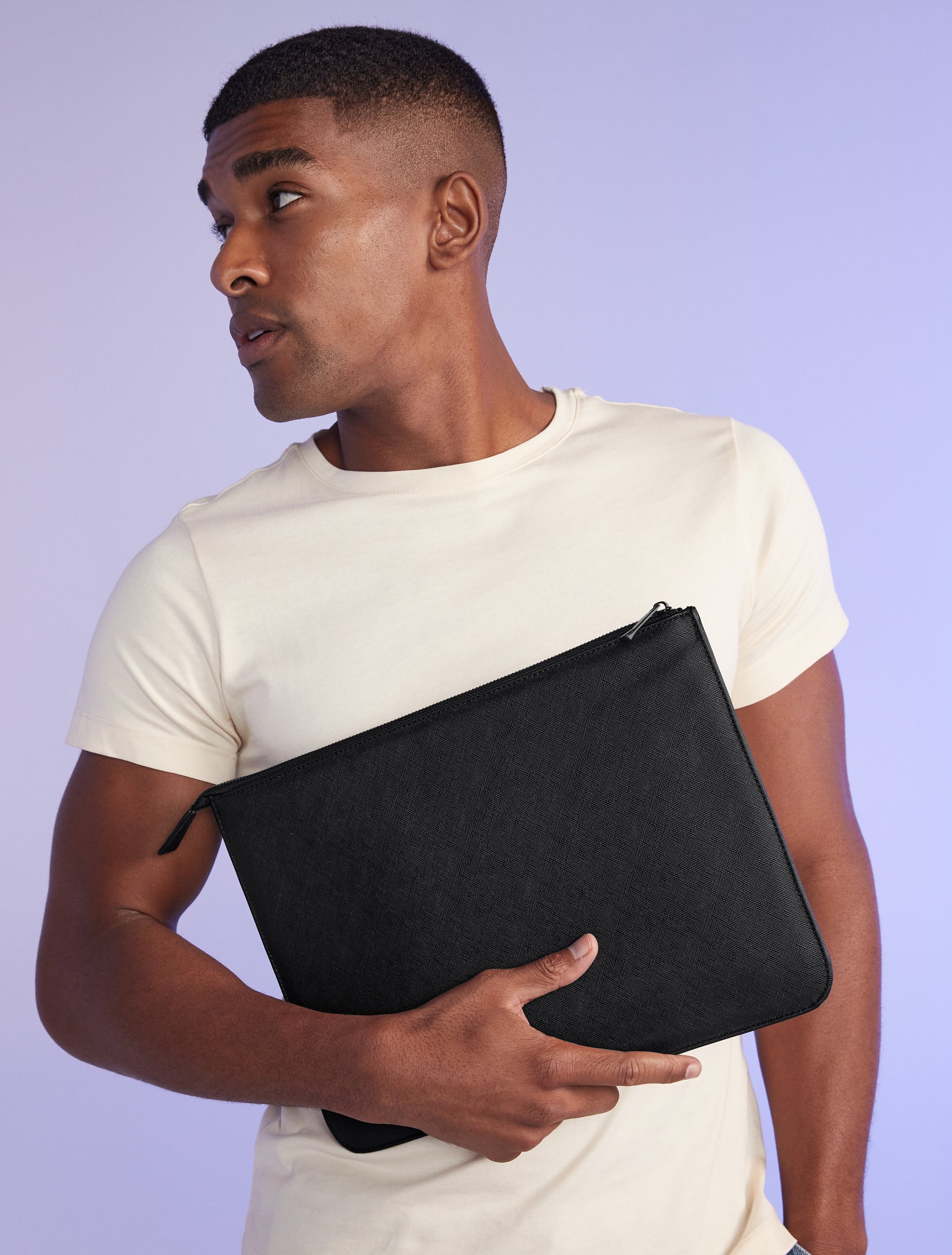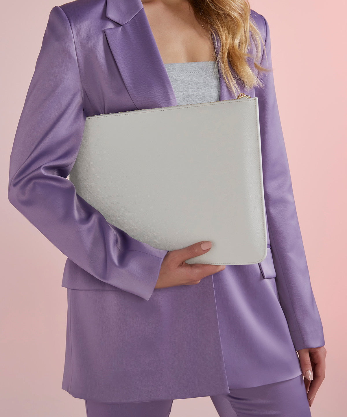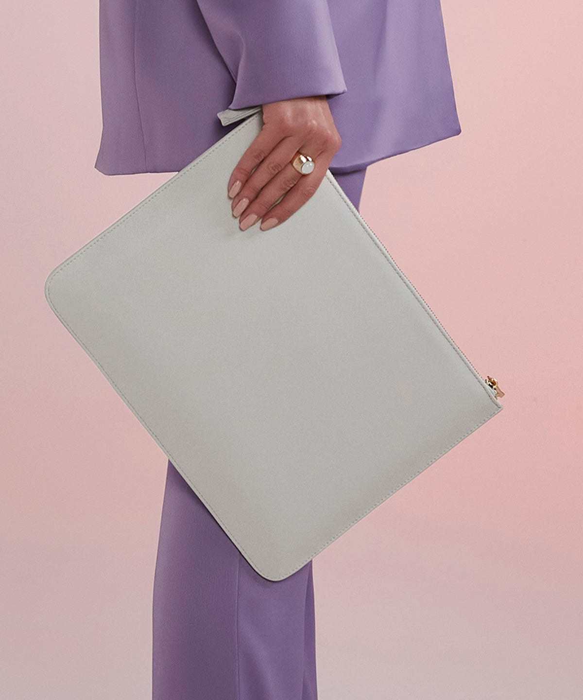 100% Leather-look PU. Saffiano fine grain. Multipurpose use. Soft-touch lining. High-shine gold metal zip. TearAway label for eay rebranding. Designed to comfortably fit A4 folders.