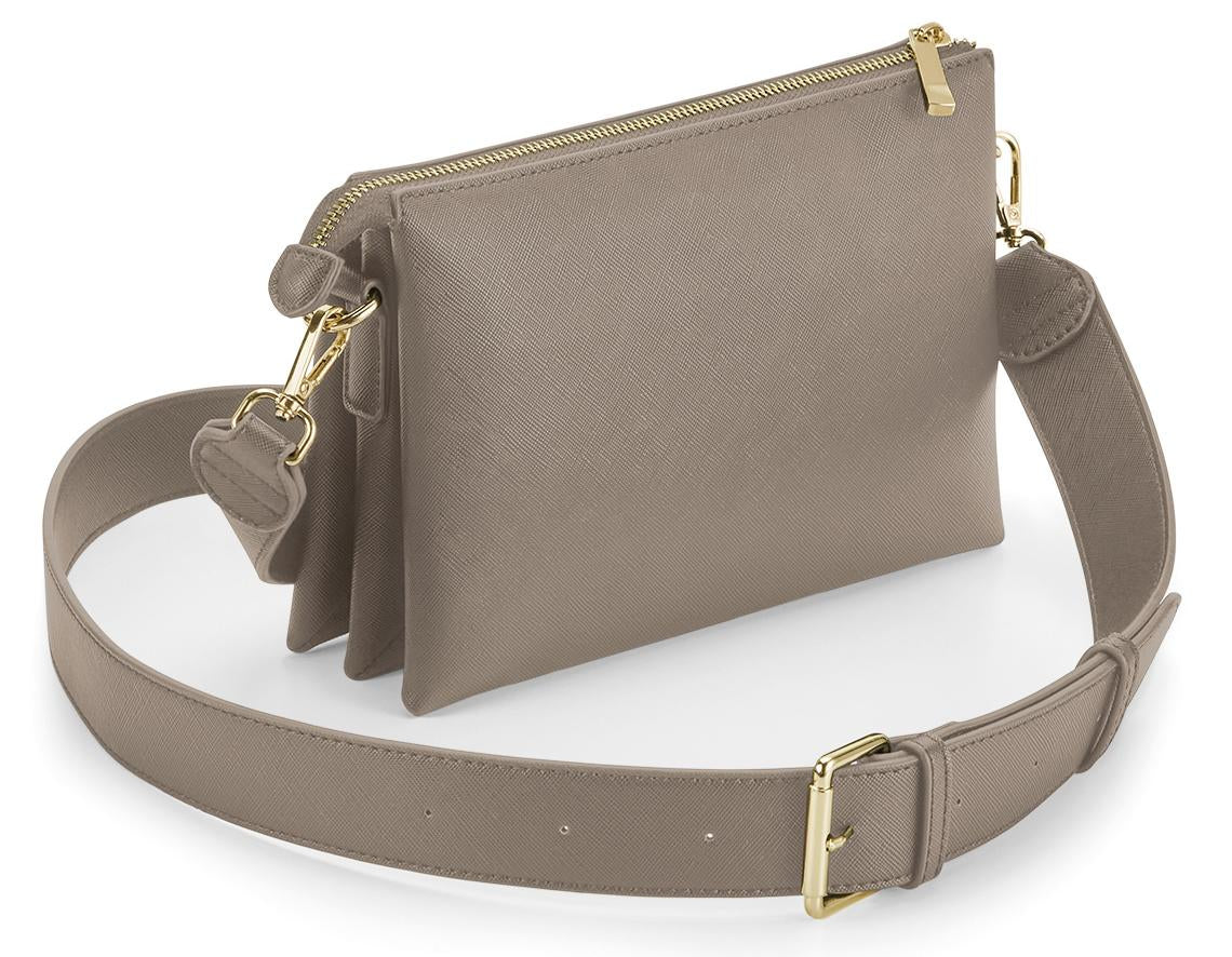 Every product in our Boutique collection combines soft, fine grain Saffiano fabric and high-shine hardware for a premium finish that elevates personalisation and gifting. BG759 provides a fresh take on the classic cross-body, featuring a modern, wide strap and soft, contemporary shape. Multiple compartments and an internal pocket are a girls best friend.