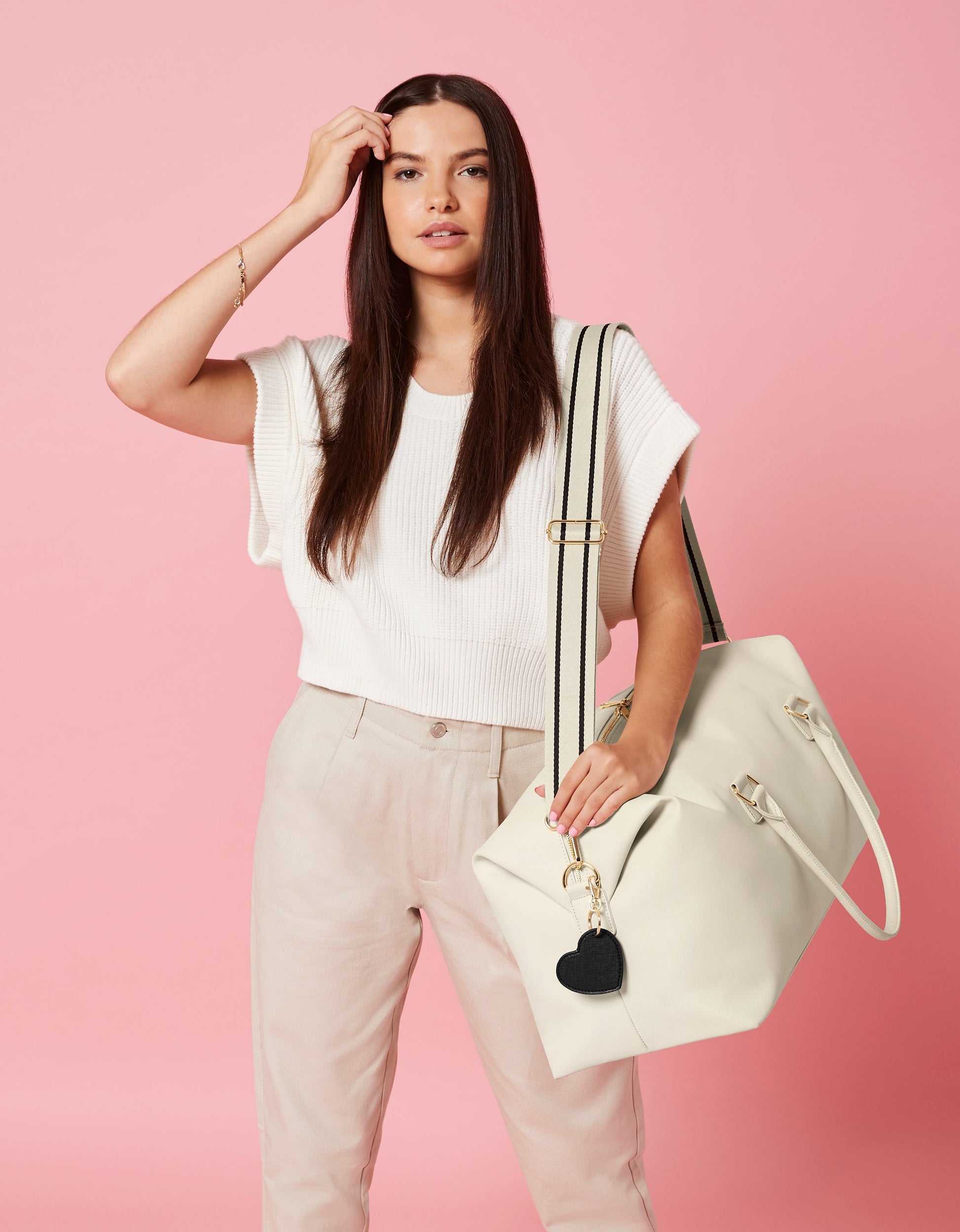 Saffiano fine grain. Extra-long main compartment zip for easy access. Zipped internal valuables pocket. Soft-touch lining. Internal baseboard. Protective base feet. High-shine gold metal zip. Self-fabric carry handles. Can be carried by hand or over the shoulder. Compatible with BG765 Boutique adjustable bag strap, Detachable, adjustable high-density webbing shoulder strap. TearAway label for ease of rebranding. BSCI certified. Reach certified.
