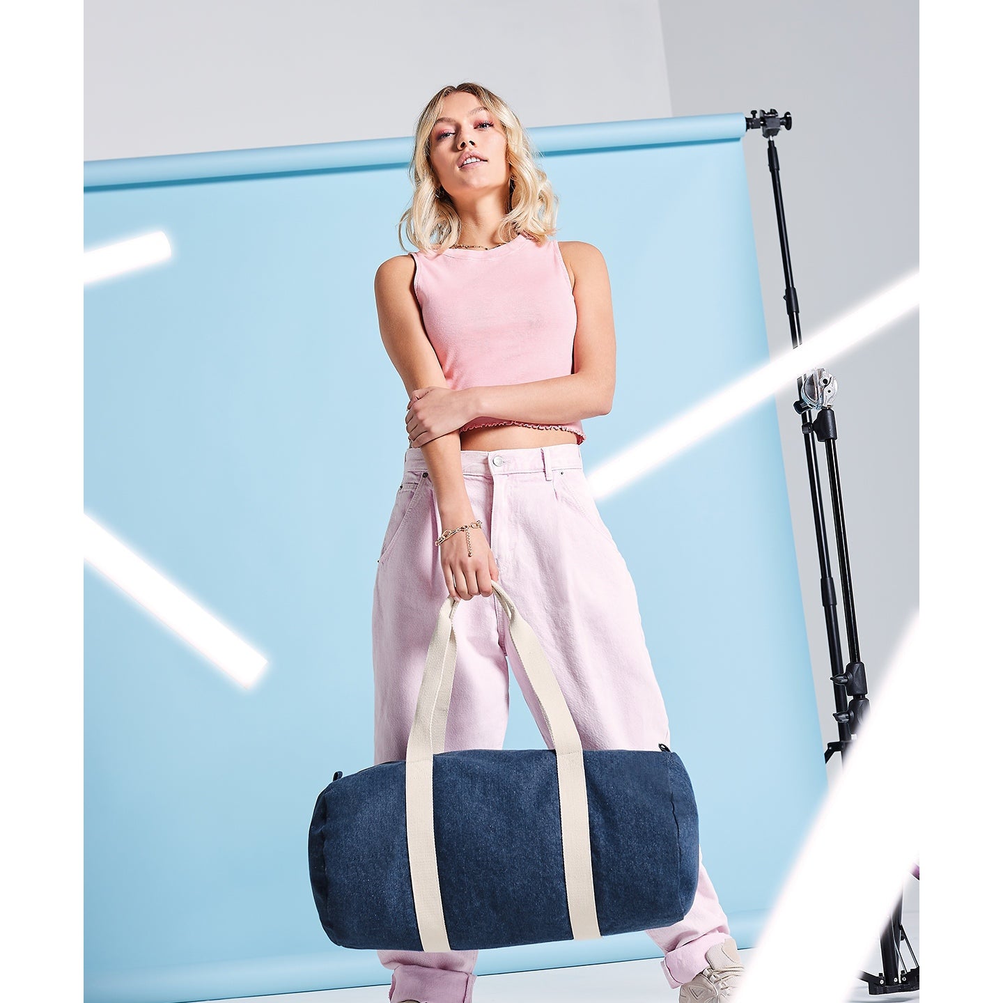 Carried by hand or over the shoulder, the denim barrel bag is a popular style contender. Available in a soft-touch denim blend, this relaxed barrel-shape bag makes the perfect gym kit holdall or weekend bag.