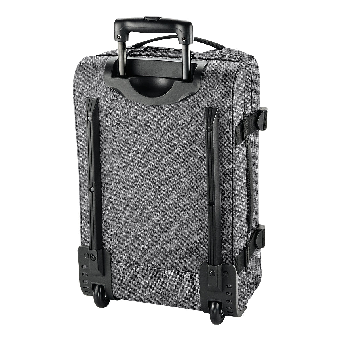 TearAway label for ease of rebranding. Convenient dual compartment design for easy packing. Lockable main compartment zip. Large zippered front compartment with internal mesh divider. Zippered internal pocket. Dual compression straps. Padded top and side handles. High stability retractable twin-handle. Aircraft cabin compatible - suitable for most airlines. Durable integrated skate wheels. Can be further customised with BG485 Escape handle wrap. Padded laptop compartment, compatible up to 15.6". Reach certified. SEDEX certified.