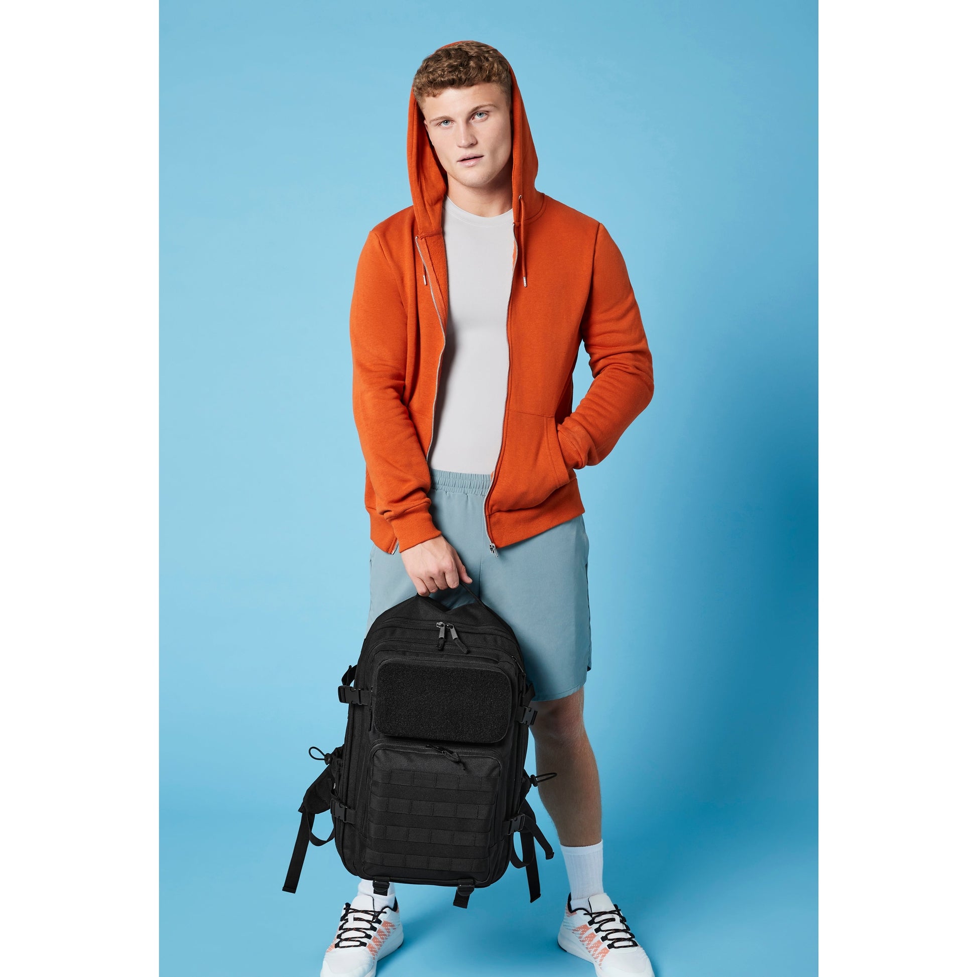 With its 35-litre capacity, the BG850 is extremely generous when it comes to storage space, but still comfortable when carrying thanks to its oversized ergonomic straps, padded back panel and fully adjustable chest strap. This military-inspired design features MOLLE webbing loop details, compression straps and a large top carry handle, as well as a full Rip-Strip front pocket designed for optimal customisation with interchangeable patches. As well as a large main compartment, the BG850 also has internal mesh pockets, multiple zippered front pockets, a padded laptop compartment and two tight-knit stretch mesh bottle/shaker pockets. This is an all-purpose backpack ready to take on everything from the commute to the gym.