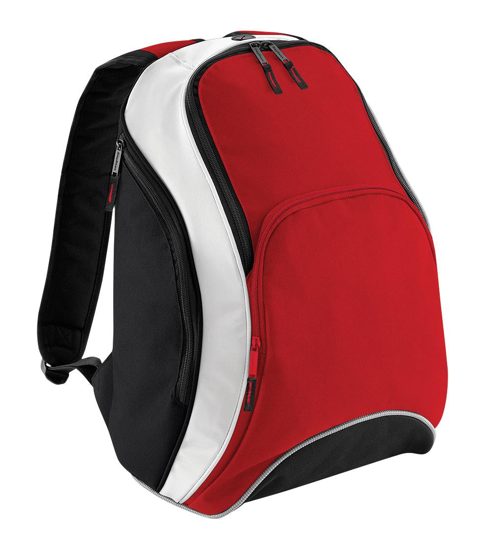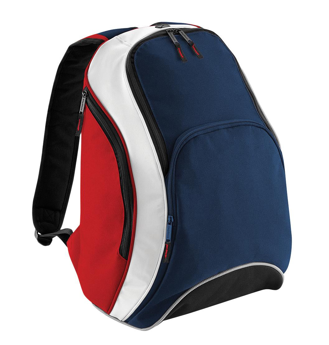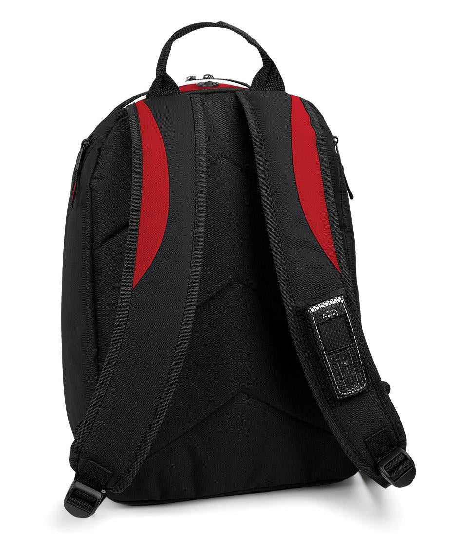 Padded adjustable shoulder straps. Enhanced visibility. Reflective piping. Zippered front pocket. Zippered side pockets. Internal mesh pocket. Water bottle pocket. Media pocket. Headphone port. Padded back panel. Reach certified.