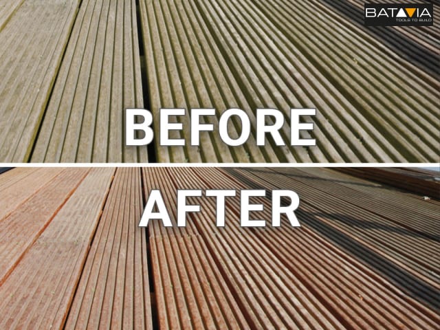 After jet washing your decking and allowing it to thoroughly dry out, use the multi-material brush to clean out the grooves where dust and dirt will have settled prior to applying your stain, oil or decking treatment. This will allow better penetration/adhesion to the wood and prolong the life of your decking.