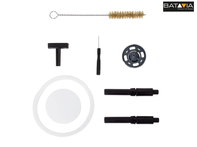 Supplied with: 3 x Nozzles: 1.5mm, 2.5mm & 3.0mm, 10 x Paper Filters, 1 x Viscosity Measuring Cup, 1 x Nozzle Cleaning Needle and 1 x Cleaning Brush.