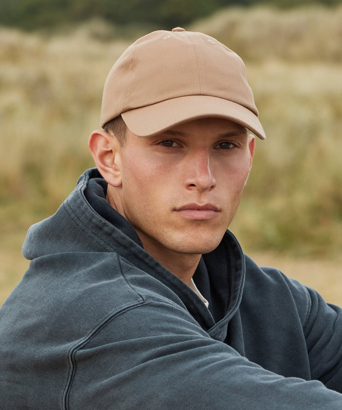 100% Organic cotton. Contains 100% OCS certified organically grown cotton, certified by Control Union CU811033. Low profile 6-panel design. Soft unstructured crown. Pre-curved peak. Self-fabric strap with tri-glide buckle. TearAway label for ease of rebranding.