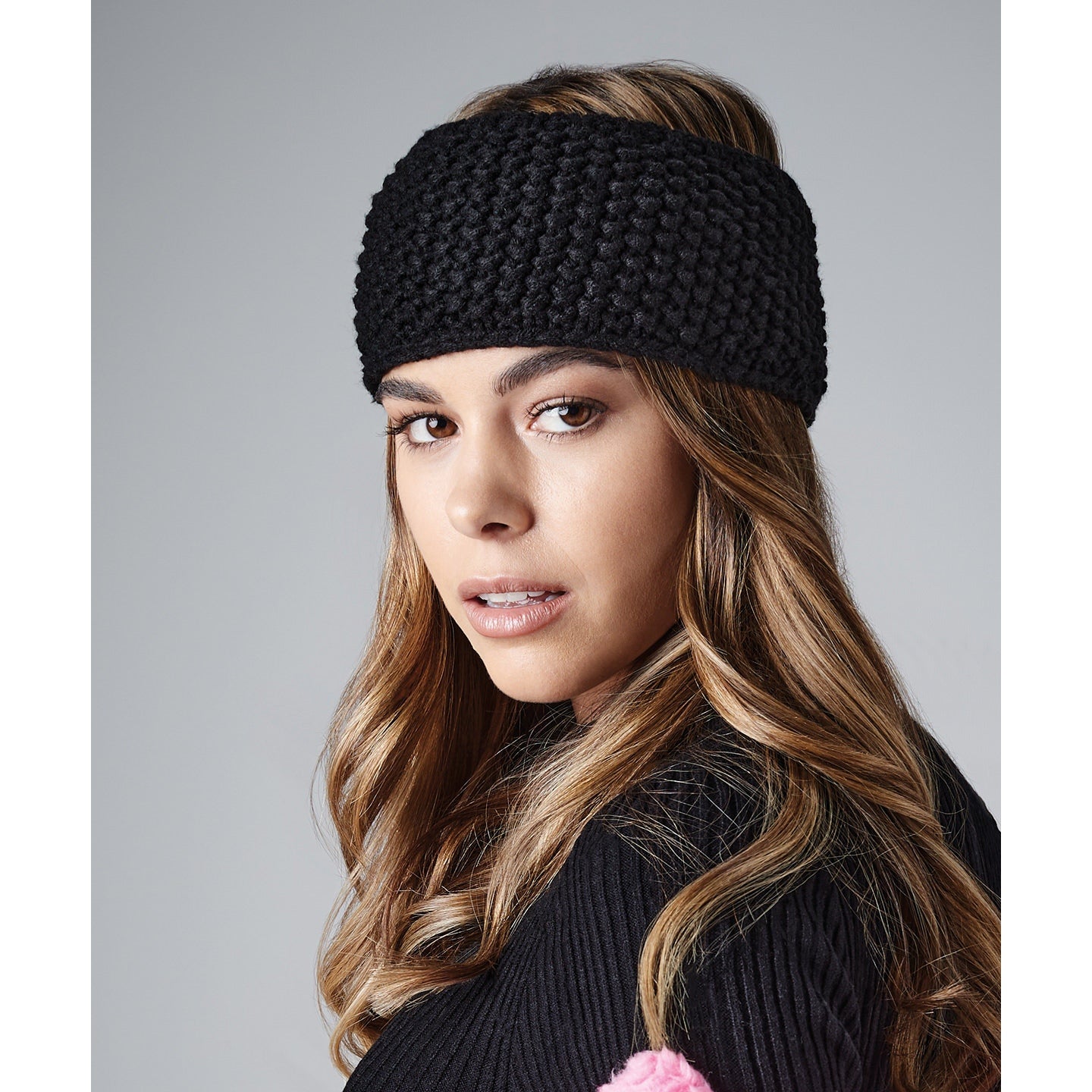 Slopeside waffle headband; hand-knitted feel; crocheted knit. BSCI certified. Reach certified.